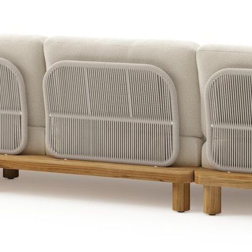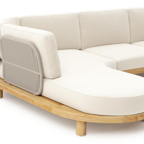 Donato loungehoek in teak en beige verticaal geweven ronde rope met all weather cosytica Althea Off White kussen | Exterioo