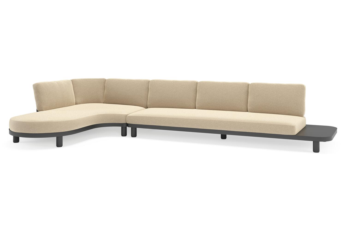 Donato loungehoek in zwart aluminium met all weather cosytica Althea Camel kussen | Exterioo