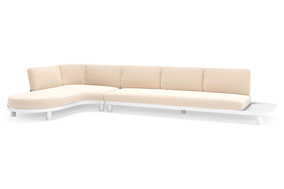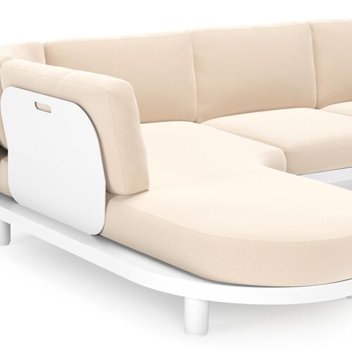 Donato loungehoek in wit aluminium met all weather sunbrella® luxe Natte Linen Chalk kussen | Exterioo