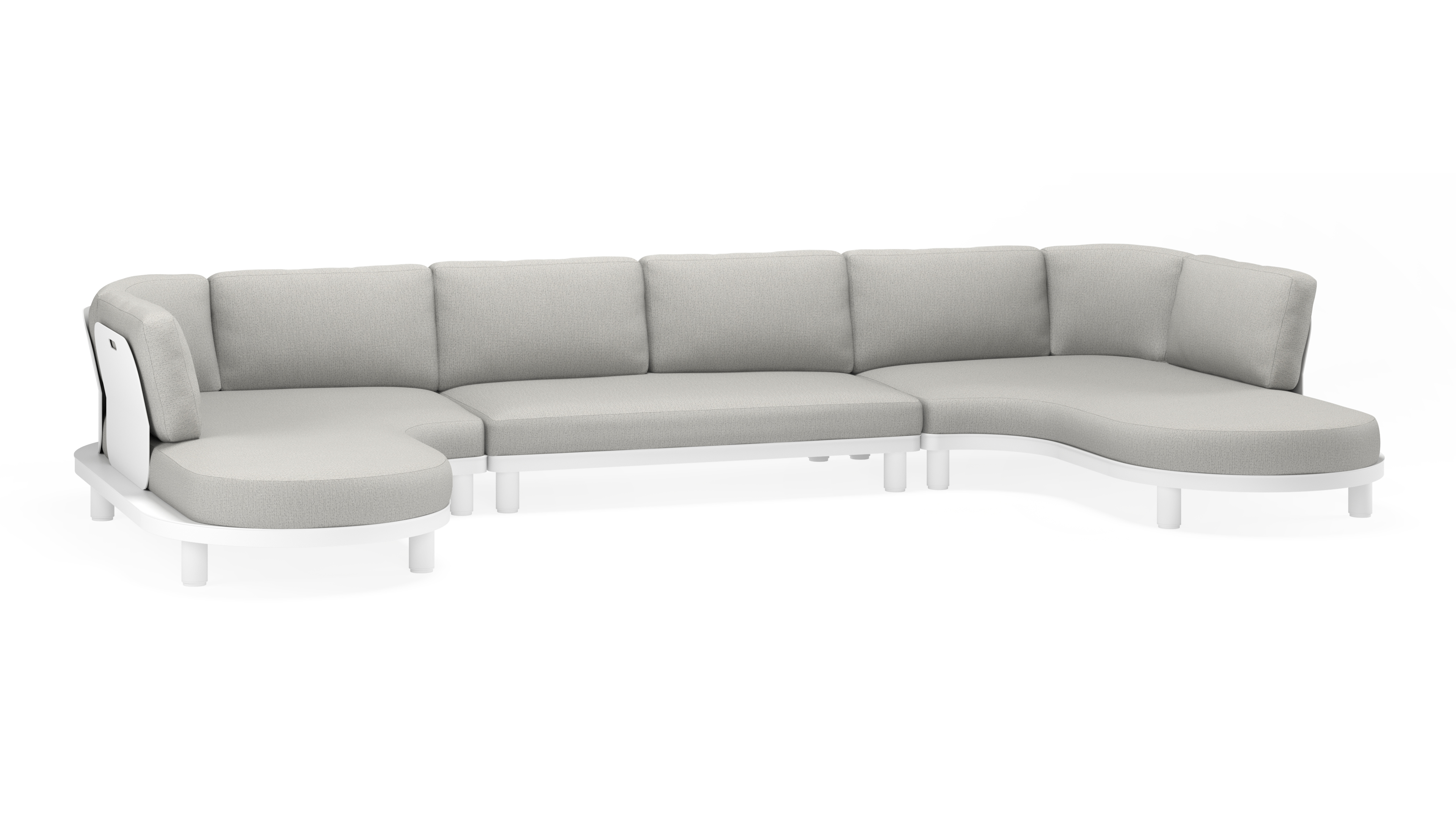 Donato loungehoek in wit aluminium met zori graphite all weather sunbrella® luxe kussens | Exterioo tuinmeubelen