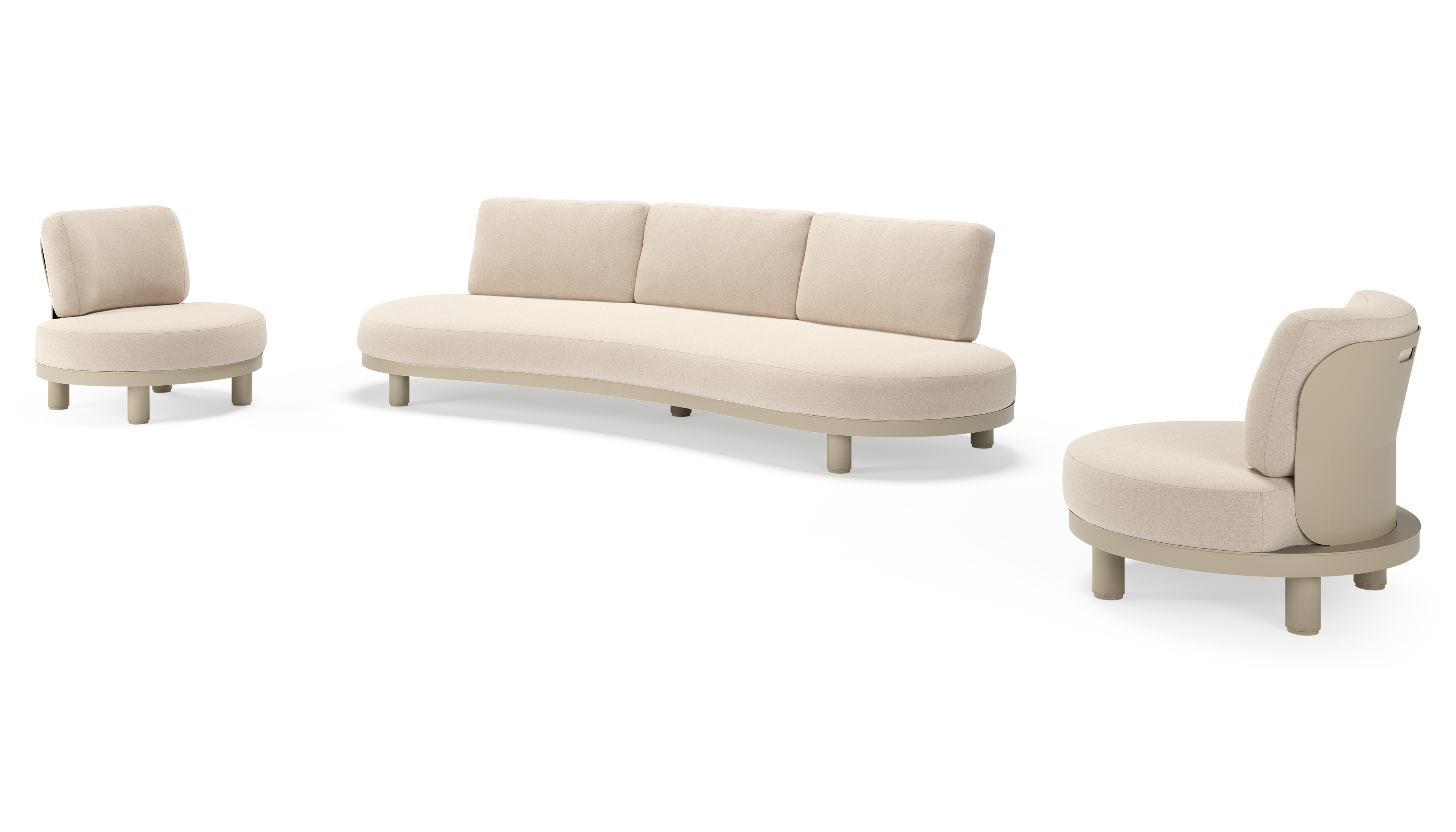 Donato loungeset in beige aluminium met all weather sunbrella® luxe Heritage Ash kussen | Exterioo tuinmeubelen