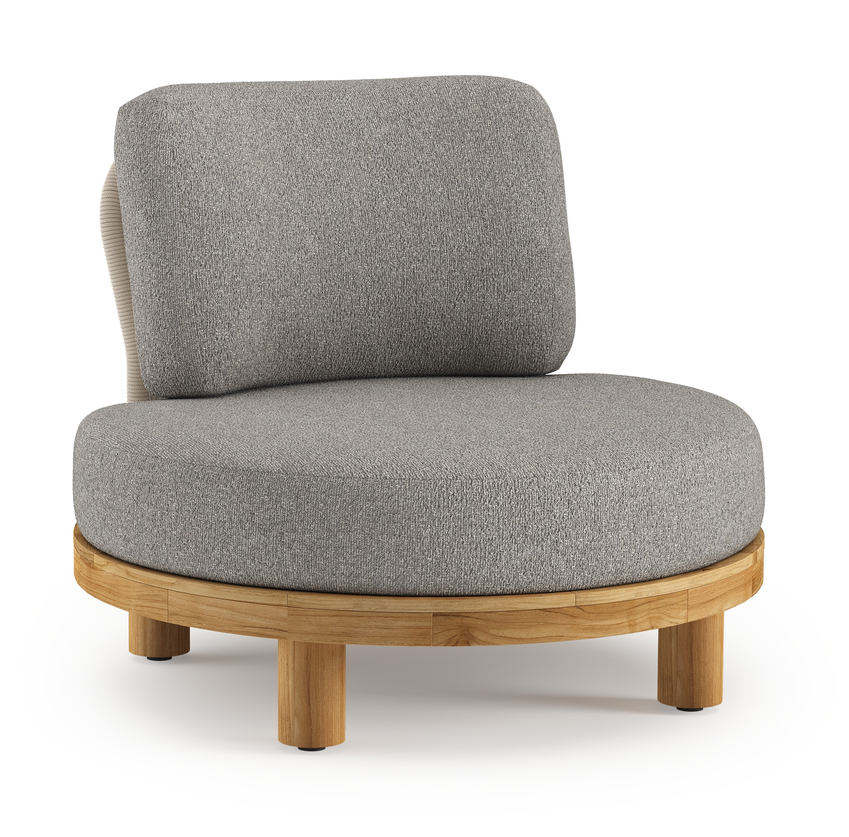 Donato loungestoel in teak en beige verticaal geweven ronde rope met all weather sunbrella® luxe Tundra Charcoal kussen | Exterioo tuinmeubelen