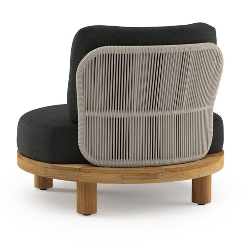 Donato loungestoel in teak en beige verticaal geweven ronde rope met all weather sunbrella® luxe Chartres Sooty kussen | Exterioo