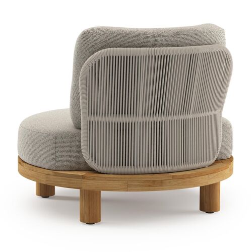 Donato loungestoel in teak en beige verticaal geweven ronde rope met all weather solica Firenze Sand kussen | Exterioo