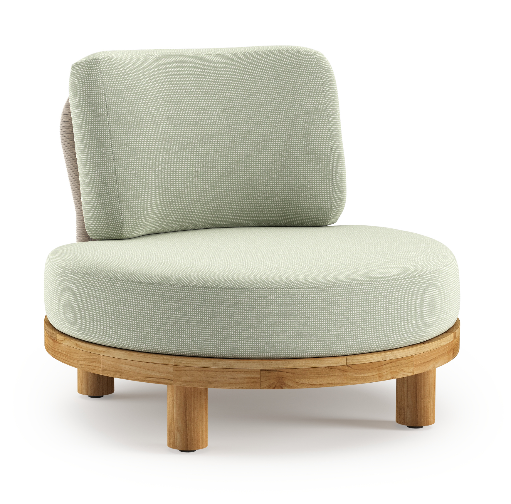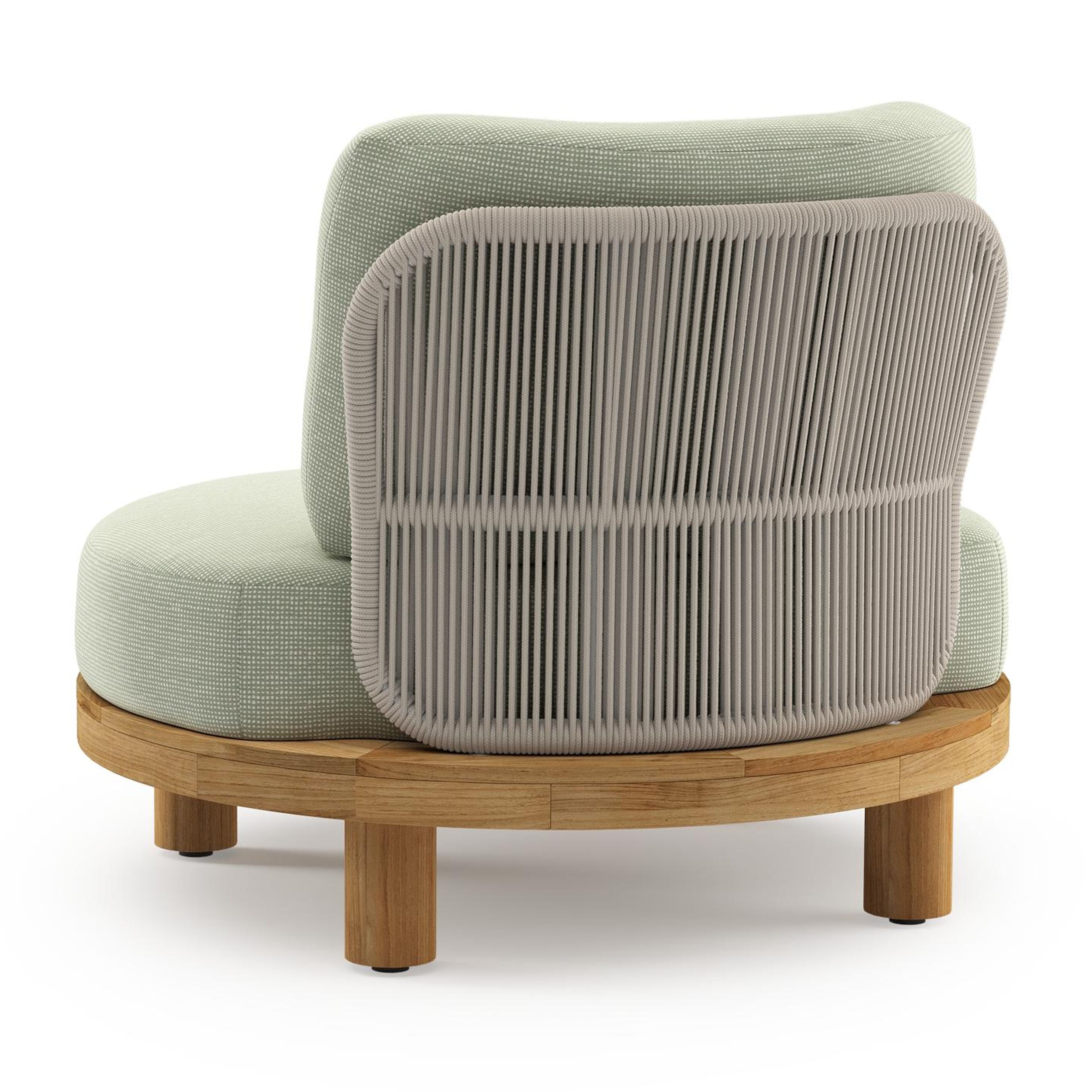 Donato loungestoel in teak en beige verticaal geweven ronde rope met all weather sunbrella® luxe Slow Spirea kussen | Exterioo tuinmeubelen