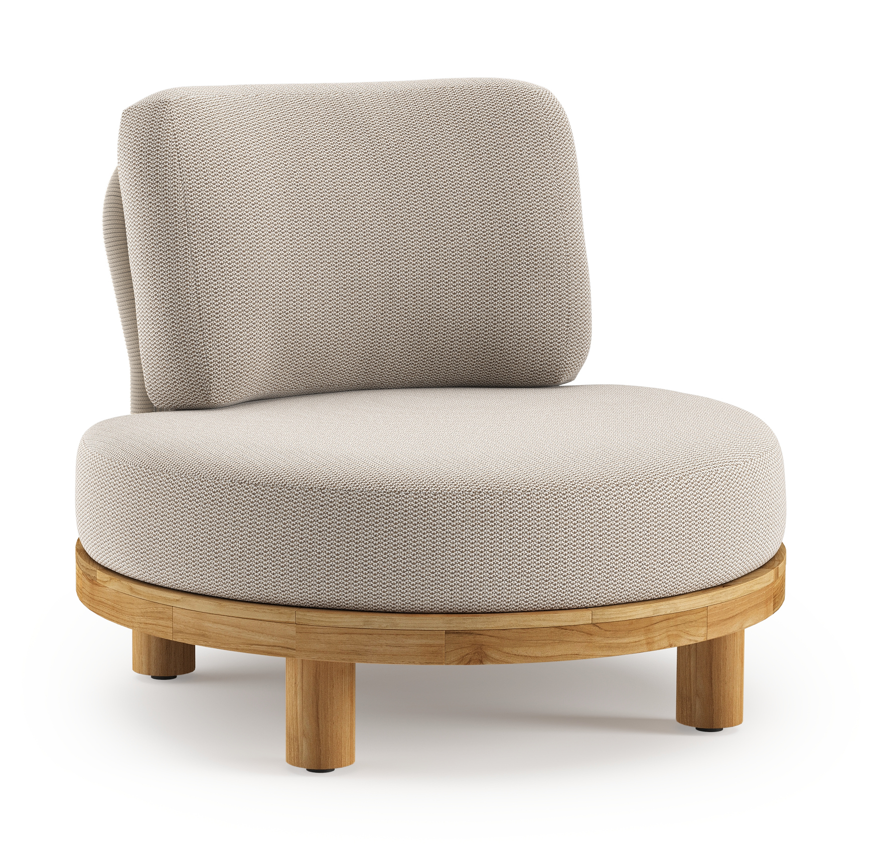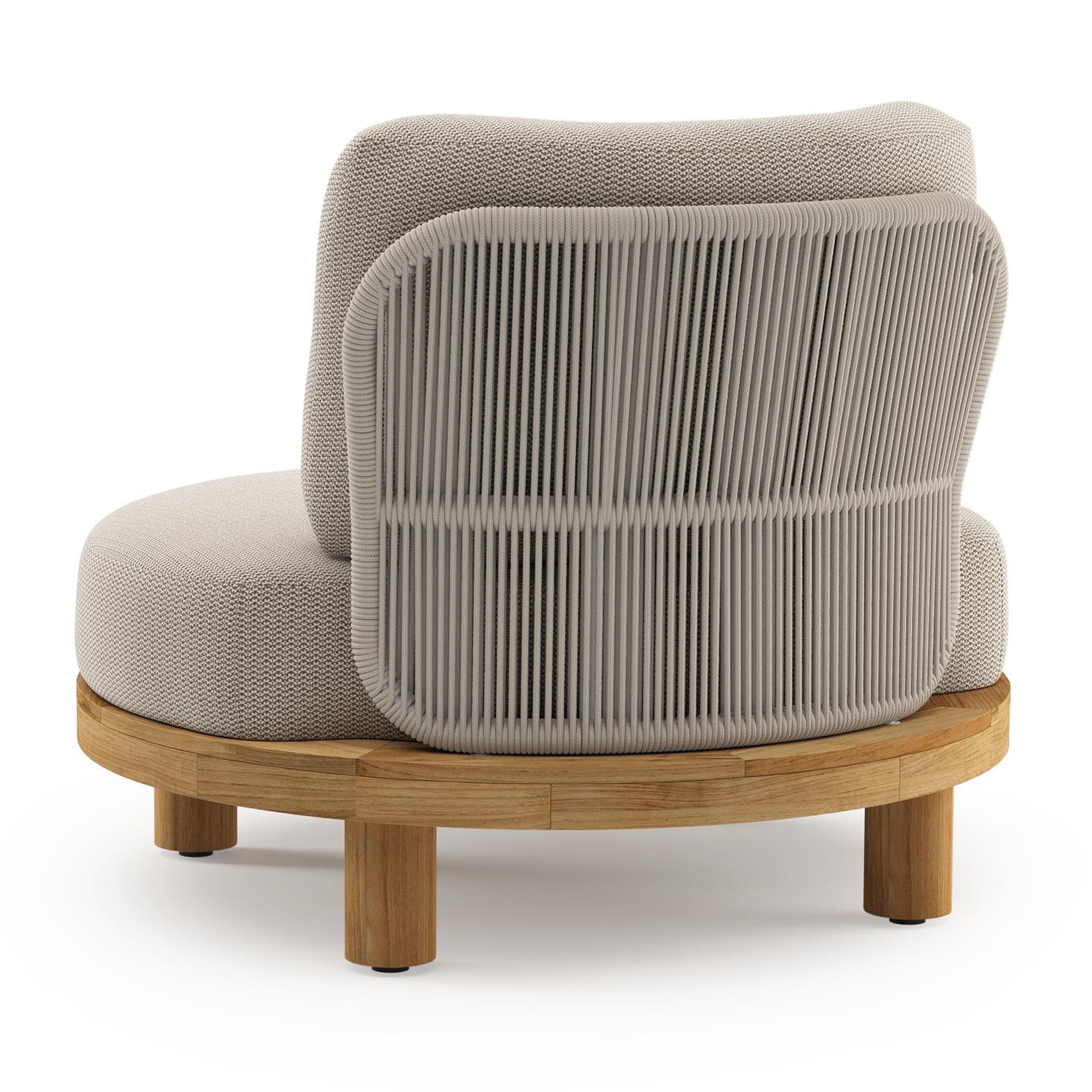 Donato loungestoel in teak en beige verticaal geweven ronde rope met all weather sunbrella® luxe Lopi Fossil kussen | Exterioo tuinmeubelen