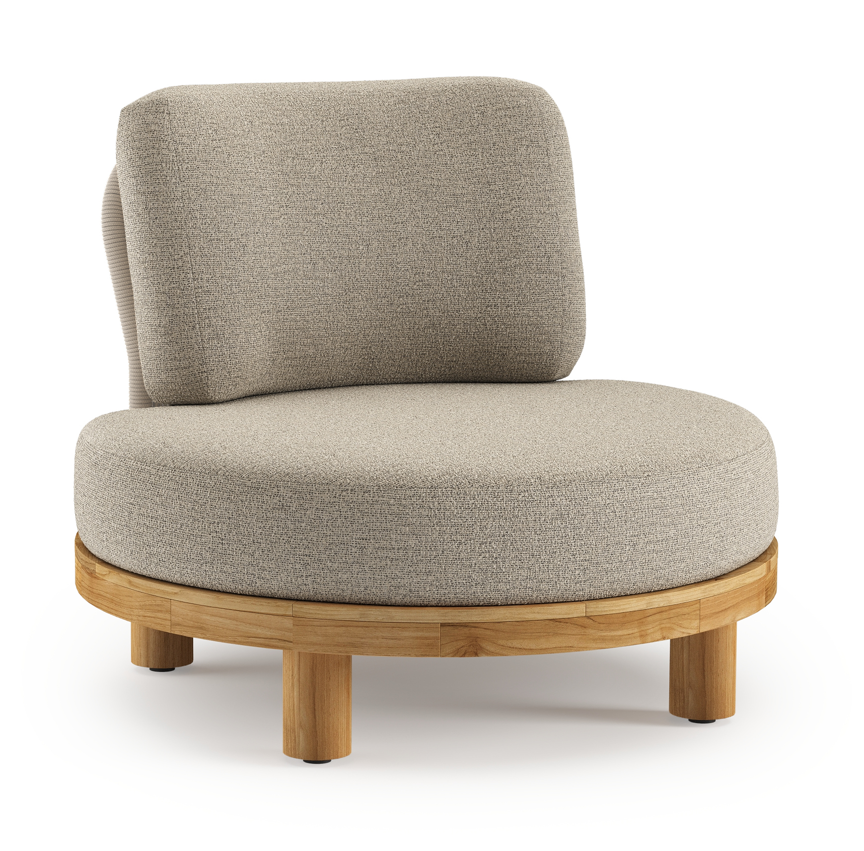 Donato loungestoel in teak en beige verticaal geweven ronde rope met all weather cosytica Catania Beige kussen | Exterioo tuinmeubelen