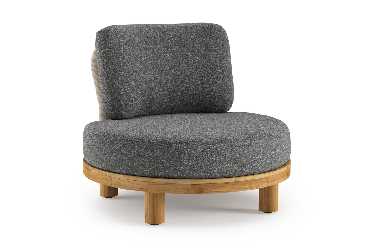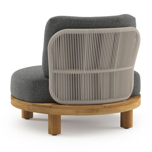 Donato loungestoel in teak en beige verticaal geweven ronde rope met all weather cosytica Catania Black kussen | Exterioo