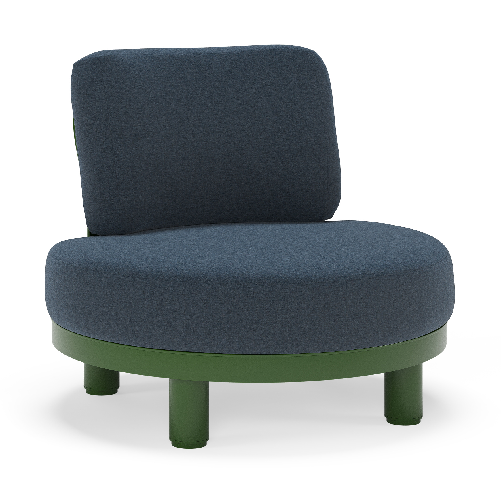 Donato loungestoel in groen aluminium met all weather sunbrella® luxe Heritage Indigo kussen | Exterioo tuinmeubelen