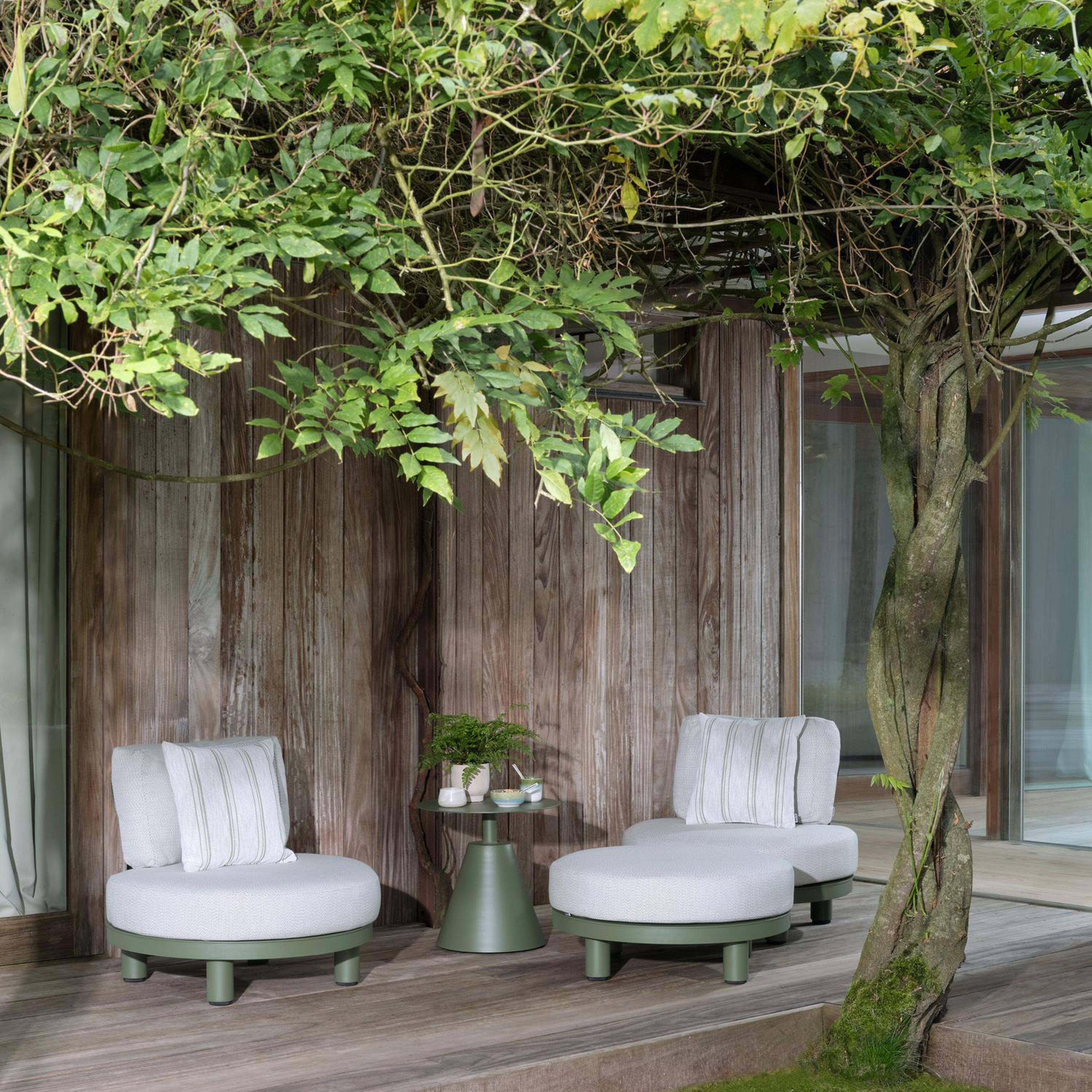 Donato loungestoel in groen aluminium met all weather sunbrella® luxe Slow Farafra kussen | Exterioo tuinmeubelen