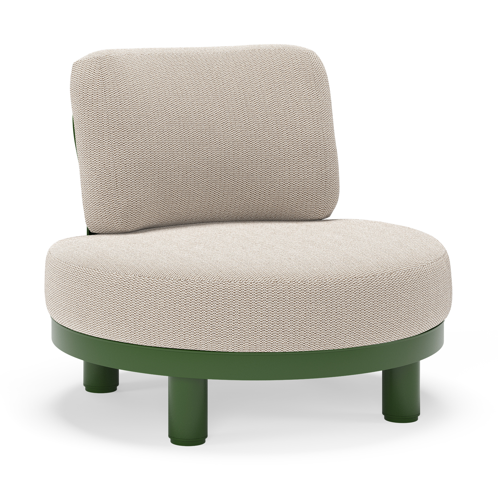 Donato loungestoel in groen aluminium met all weather sunbrella® luxe Lopi Fossil kussen | Exterioo tuinmeubelen