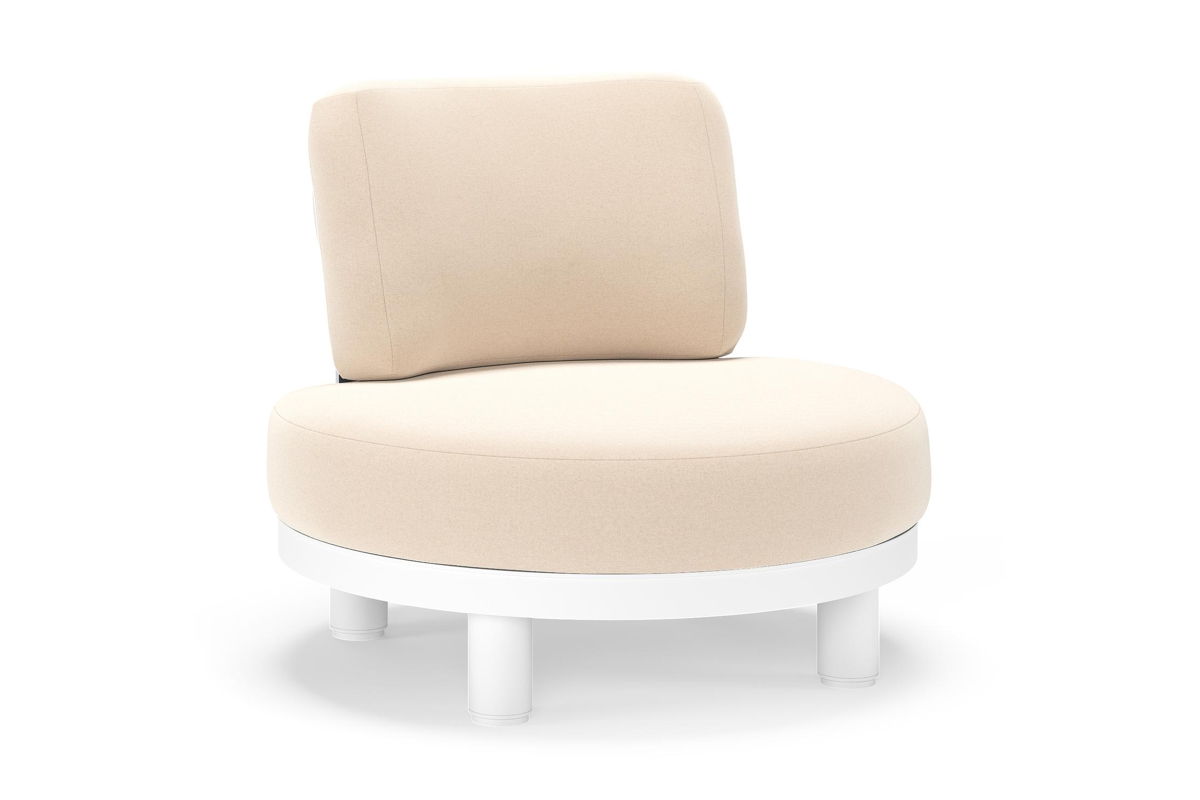 Donato loungestoel in wit aluminium met all weather sunbrella® luxe Natte Linen Chalk kussen | Exterioo