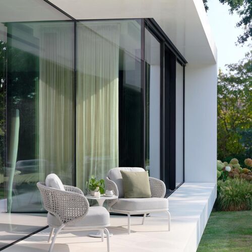 Luchtig wevingwerk, gevleugelde rugleuningen en speelse lijnen zijn de ingrediënten van onze Donato lounge. De Donato is een moderne benadering van wicker in combinatie met aluminium. Zachte vormen voor zachte momenten, alleen of met vrienden en familie. Het kussen in deze loungezetel is niet alleen stijlvol, maar ook van uitstekende kwaliteit. Je kan het weerbestendige Sunbrella luxe kussen makkelijk laten buiten liggen. Het kussen is kleurvast, waterafstotend en ademend.