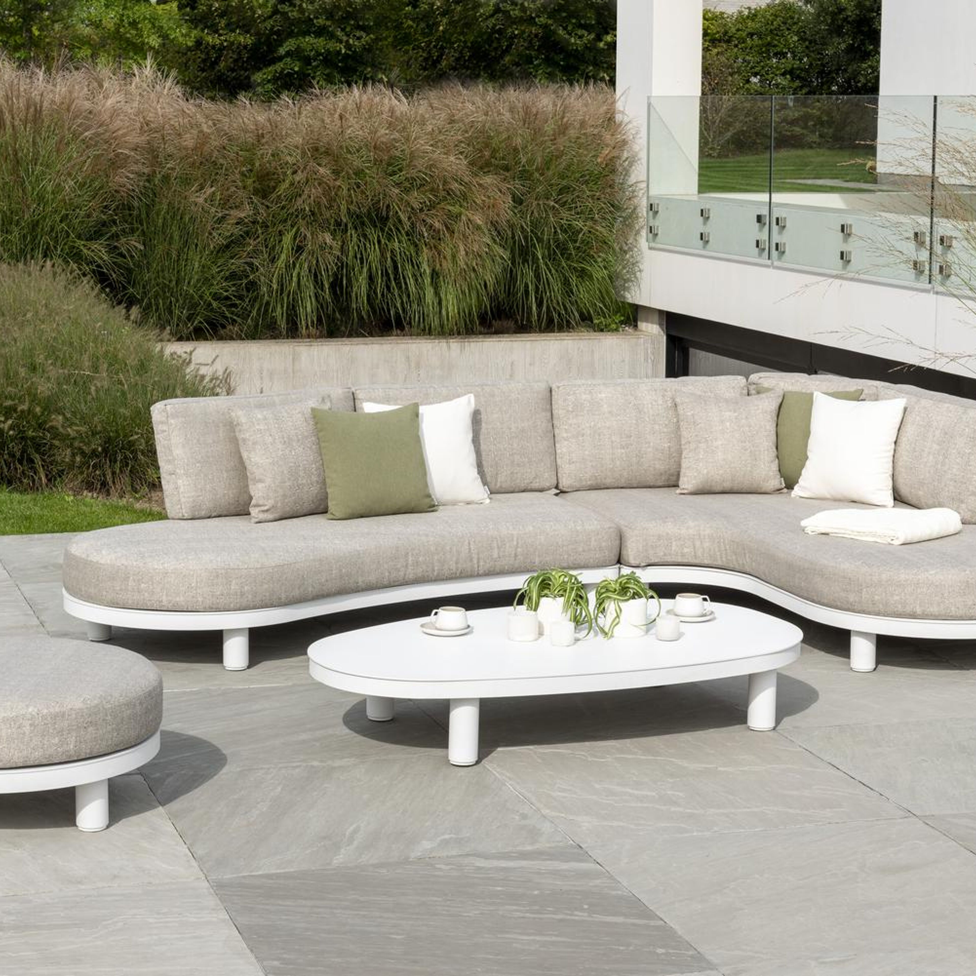 Donato omarmt de natuur met vloeiende vormen, warm teak en stijlvol aluminium in wit, zwart of beige. Een ontwerp dat rust uitstraalt, karakter toevoegt en natuurlijke elegantie naar je tuin brengt.