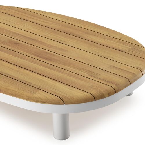 Donato loungetafel organisch in wit aluminium en teak - L 151 x B 90 x H 25 cm | Exterioo