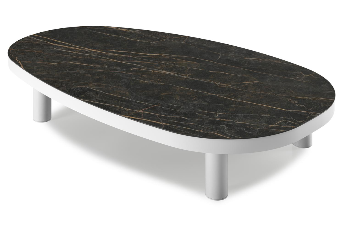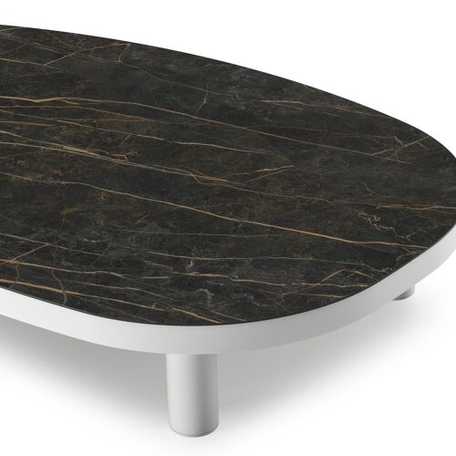 Donato loungetafel organisch in wit aluminium en volkeramiek Black Obsession - L 151 x B 90 x H 25 cm | Exterioo