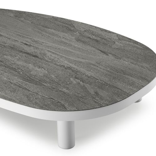 Donato loungetafel organisch in wit aluminium en volkeramiek Aspen Grey - L 151 x B 90 x H 25 cm | Exterioo