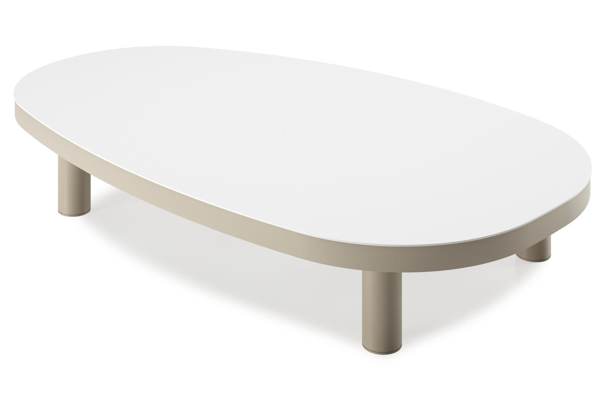 Donato loungetafel organisch in beige aluminium en volkeramiek Arctic White - L 151 x B 90 x H 24.5 cm | Exterioo