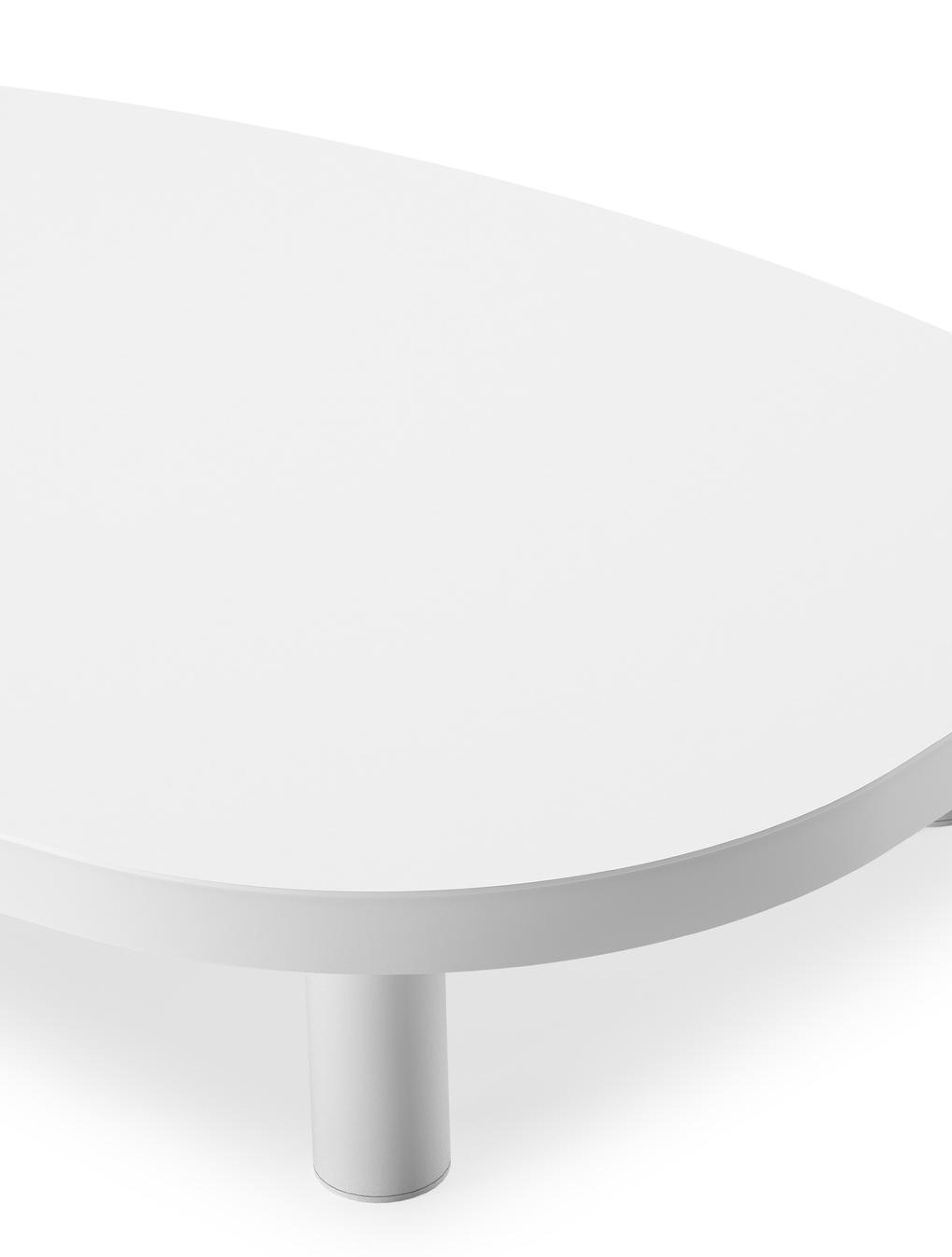 De Donato loungetafel is een trendy exemplaar dankzij zijn organische vorm. Het frame is strak aluminium. Deze loungetafel is afgewerkt met een Arctic White tafelblad. Het Arctic white tafelblad heeft een egale, tijdloze en witte kleur.