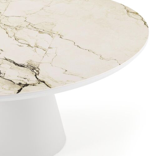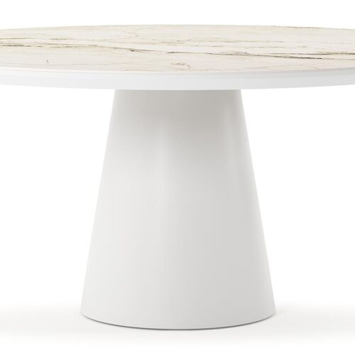 Donato tuintafel rond in wit aluminium en volkeramiek colorado dunes - Dia. 148 x H 75 cm | Exterioo