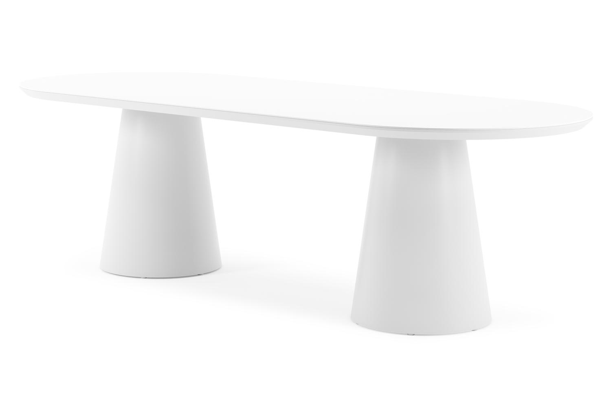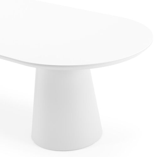 De Donato tuintafel omarmt elegantie in de buitenlucht met robuuste speelse vormen. Met een conische poot volledig gemaakt uit aluminium en een afgerond tafelblad, creëert deze tafel een harmonieuze samensmelting van een hedendaags design en een robuuste look.