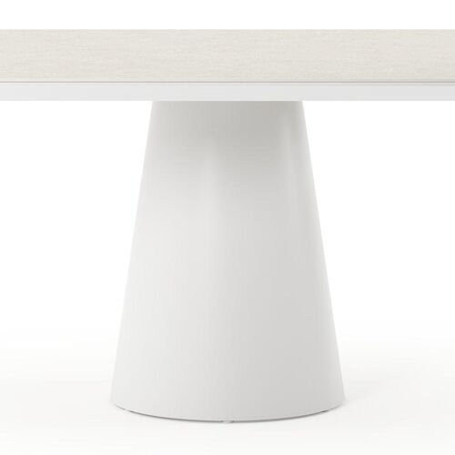 De Donato tuintafel omarmt elegantie in de buitenlucht met robuuste speelse vormen. Met een conische poot volledig gemaakt uit aluminium en een afgerond tafelblad, creëert deze tafel een harmonieuze samensmelting van een hedendaags design en een robuuste look.