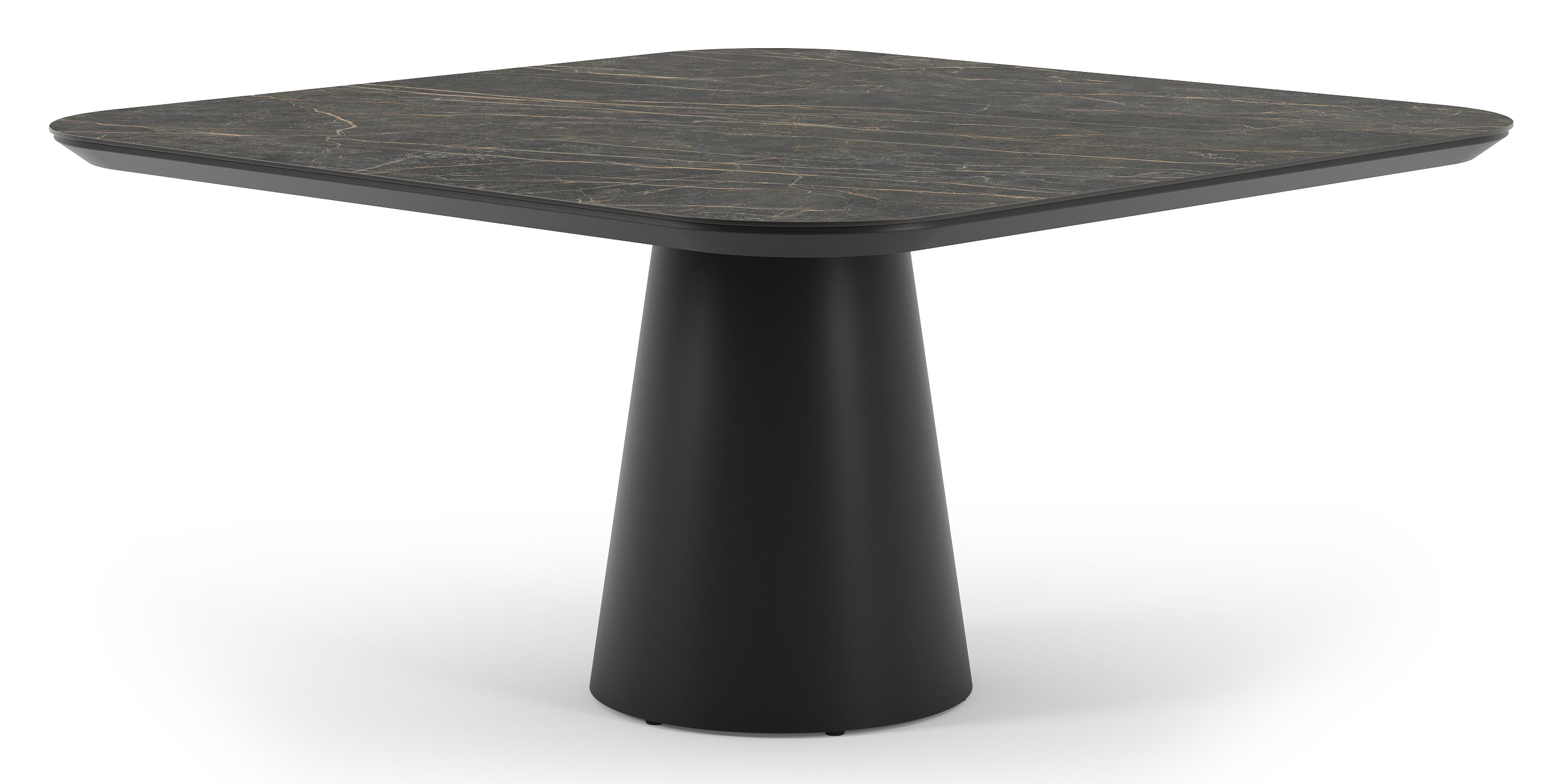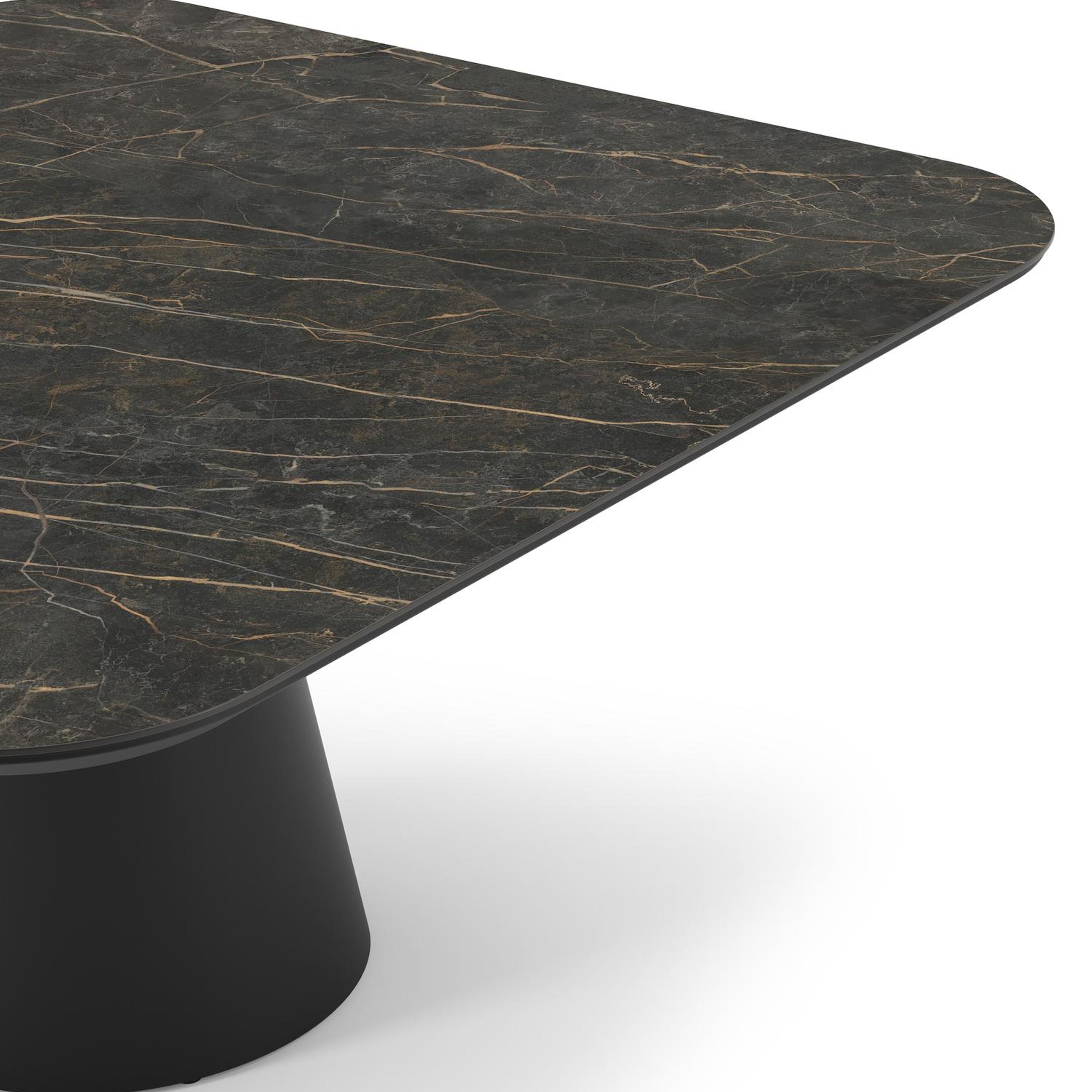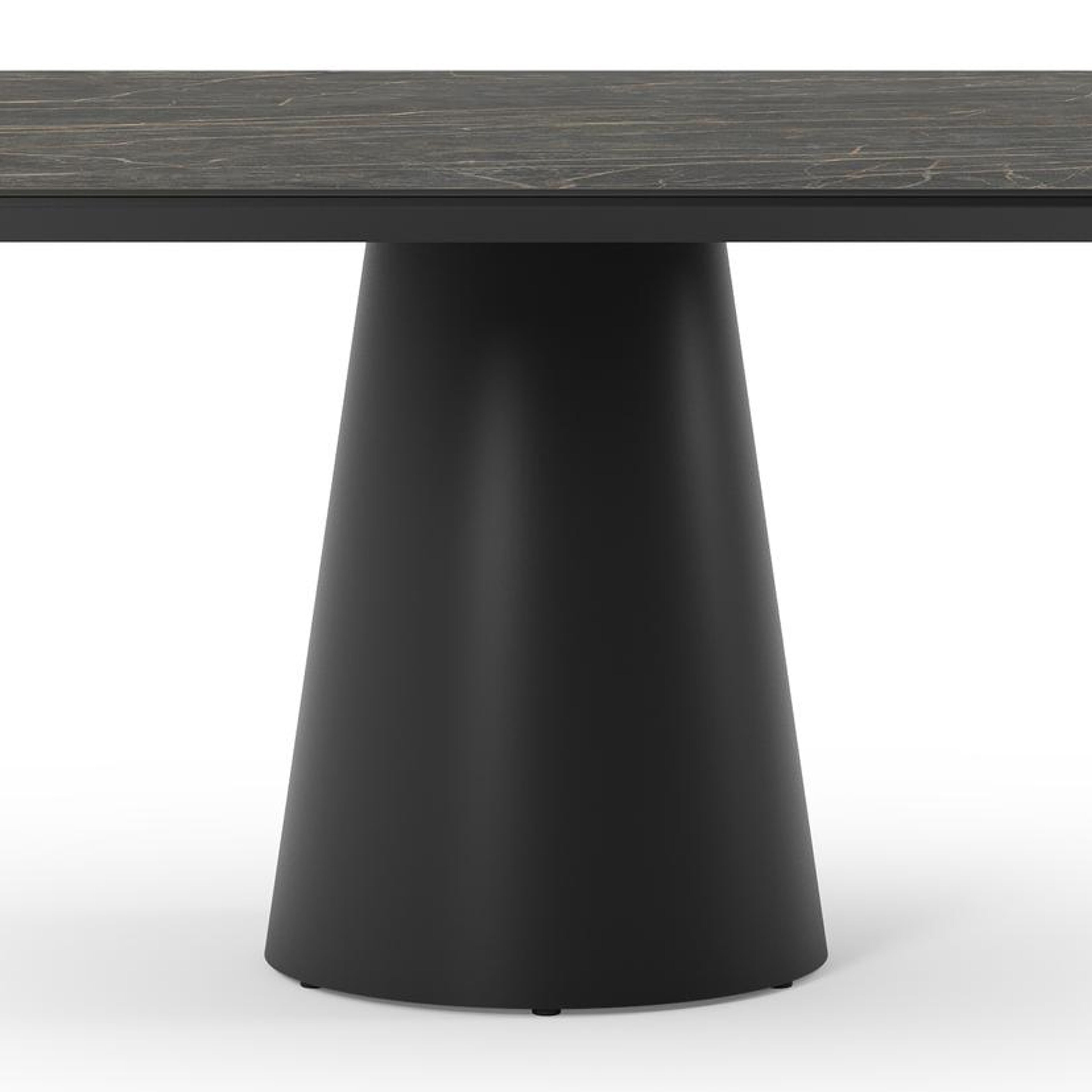 De Donato tuintafel omarmt elegantie in de buitenlucht met robuuste speelse vormen. Met een conische poot volledig gemaakt uit aluminium en een afgerond tafelblad, creëert deze tafel een harmonieuze samensmelting van een hedendaags design en een robuuste look.