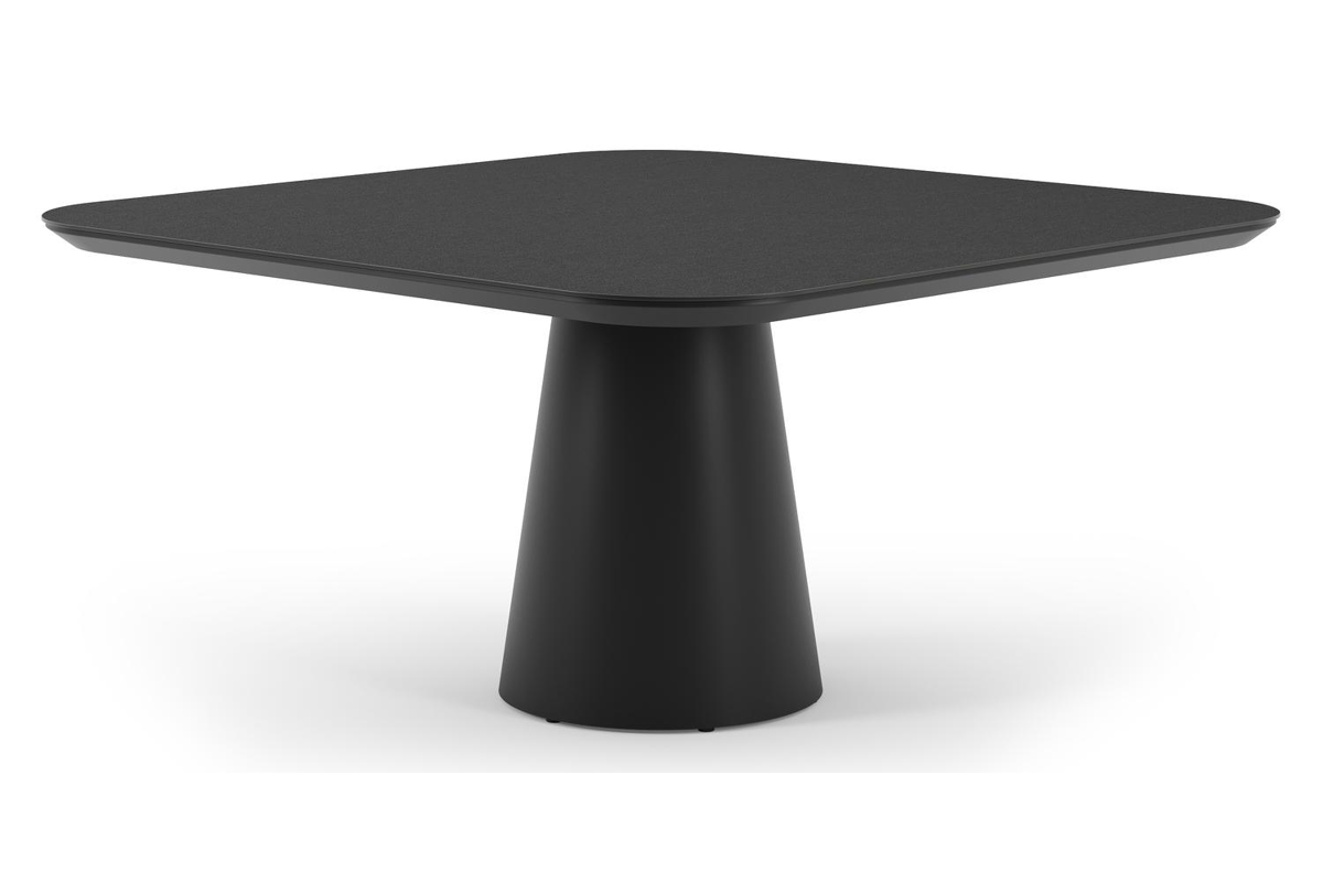 De Donato tuintafel omarmt elegantie in de buitenlucht met robuuste speelse vormen. Met een conische poot volledig gemaakt uit aluminium en een afgerond tafelblad, creëert deze tafel een harmonieuze samensmelting van een hedendaags design en een robuuste look.