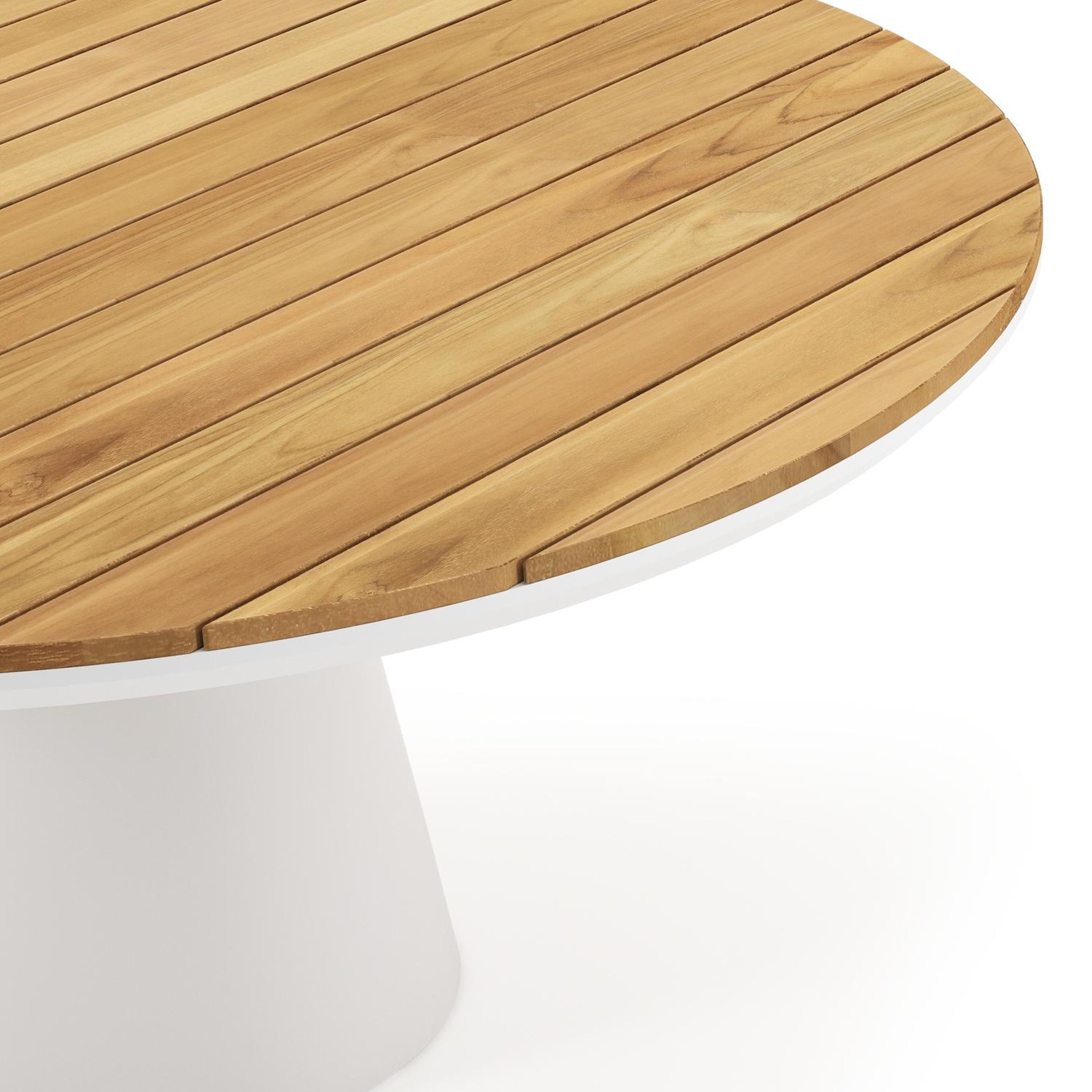 Een tafelblad uit teak staat gelijk aan bijzondere kwaliteit en natuurlijk design. Teak is een kwalitatieve houtsoort gekenmerkt door zijn hardheid. Aangezien hout leeft, kan de structuur of kleur licht anders zijn dan op het beeld weergegeven.