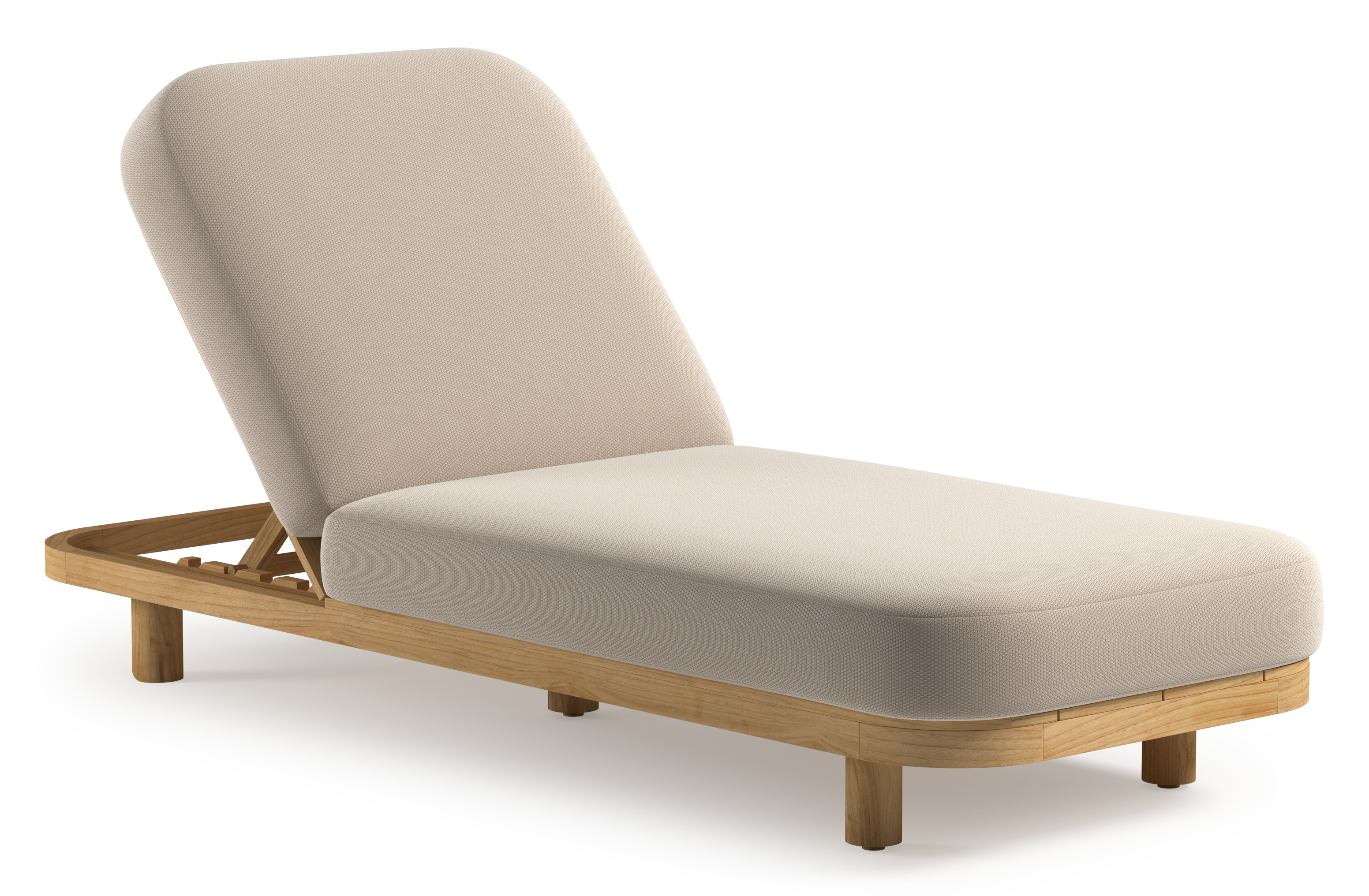 Donato verstelbaar ligbed in teak met All Weather Sunbrella® luxe lopi antique kussen | Exterioo tuinmeubelen
