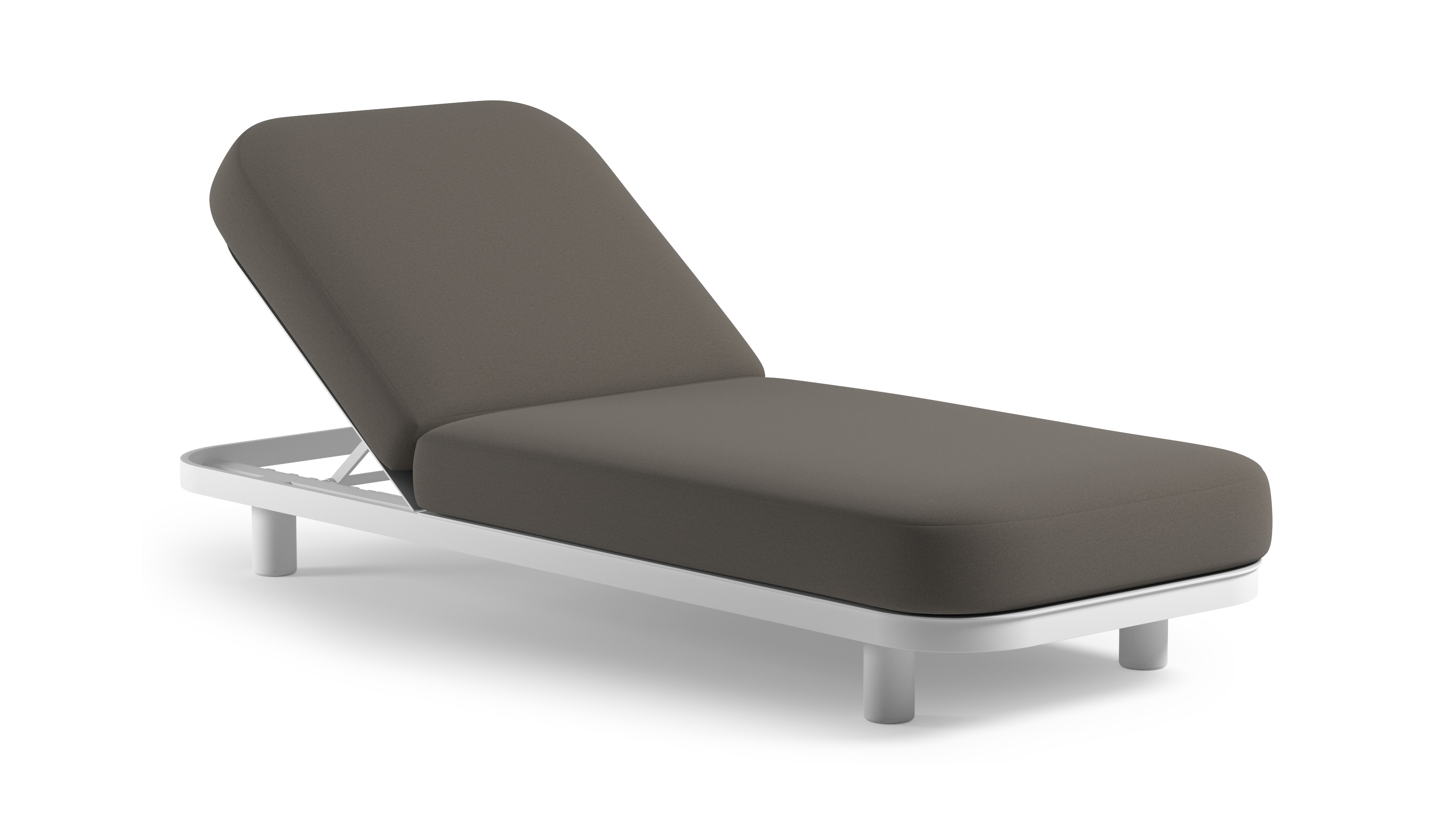 Donato verstelbaar ligbed in wit aluminium met natte carbon beige all weather Sunbrella® luxe kussen | Exterioo tuinmeubelen