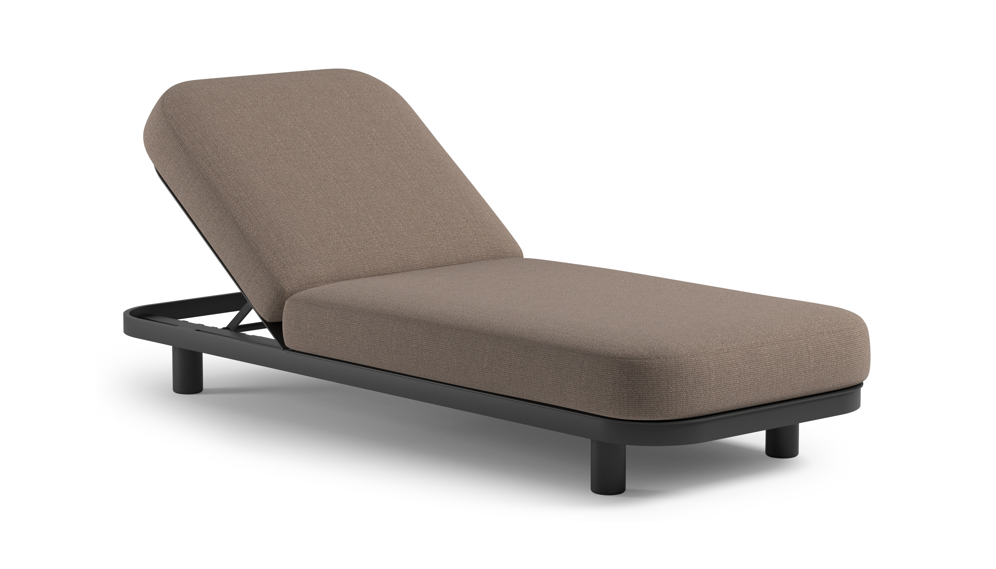 Donato verstelbaar ligbed in zwart aluminium met savane earth all weather Sunbrella® luxe kussen | Exterioo tuinmeubelen