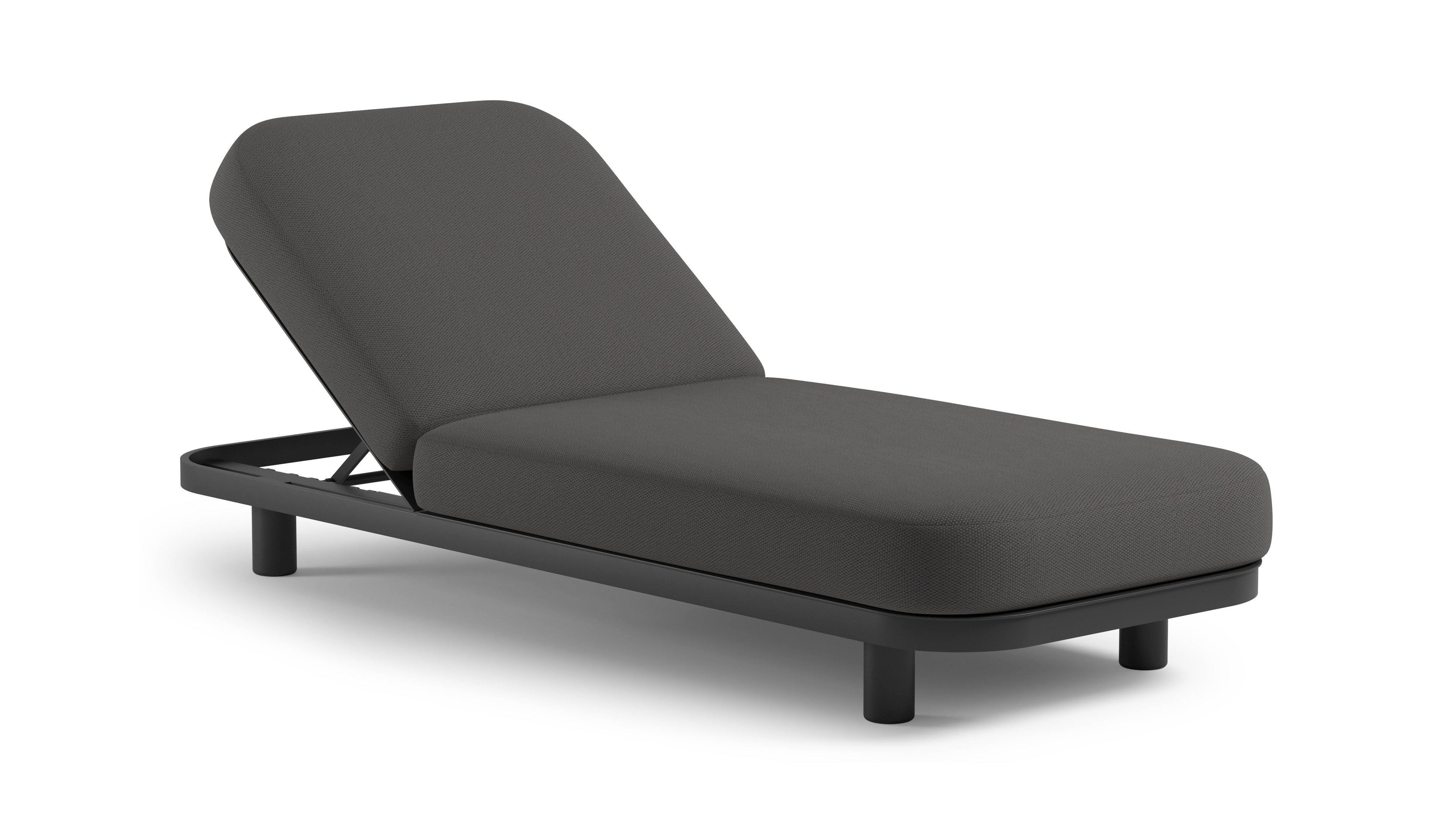 Donato verstelbaar ligbed in zwart aluminium met lopi shadow all weather Sunbrella® luxe kussen | Exterioo tuinmeubelen