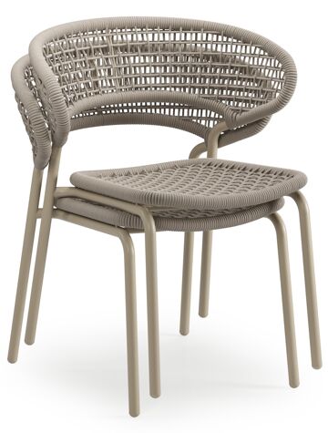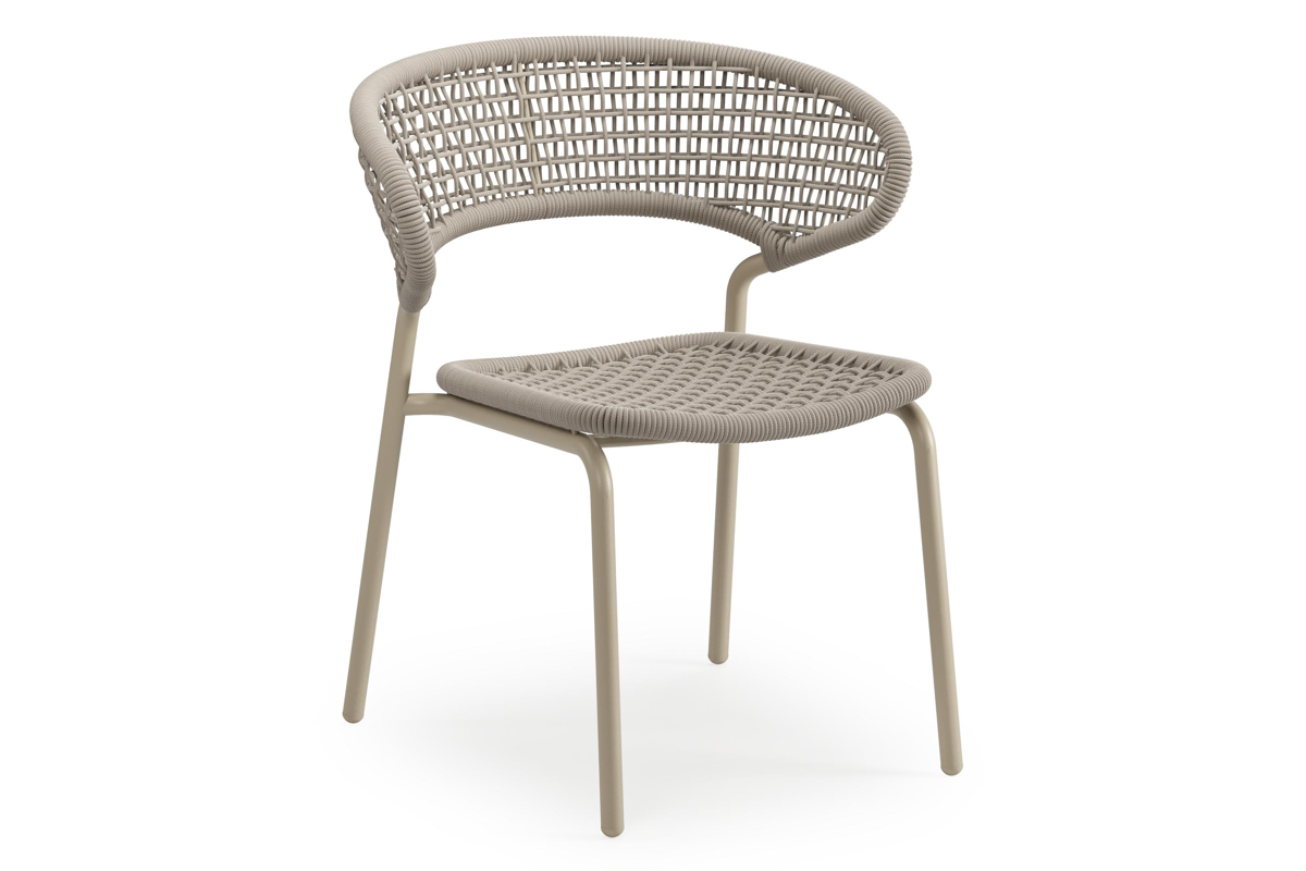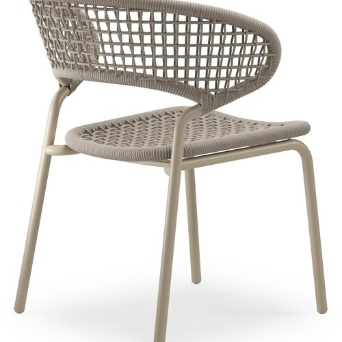 Donato XL tuinstoel in beige aluminium en beige vierkant geweven ronde rope | Exterioo