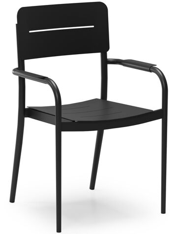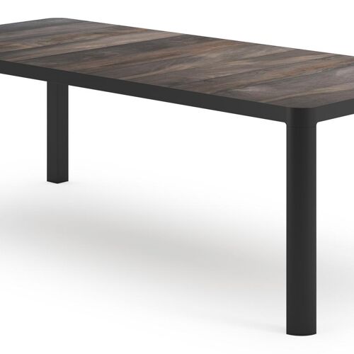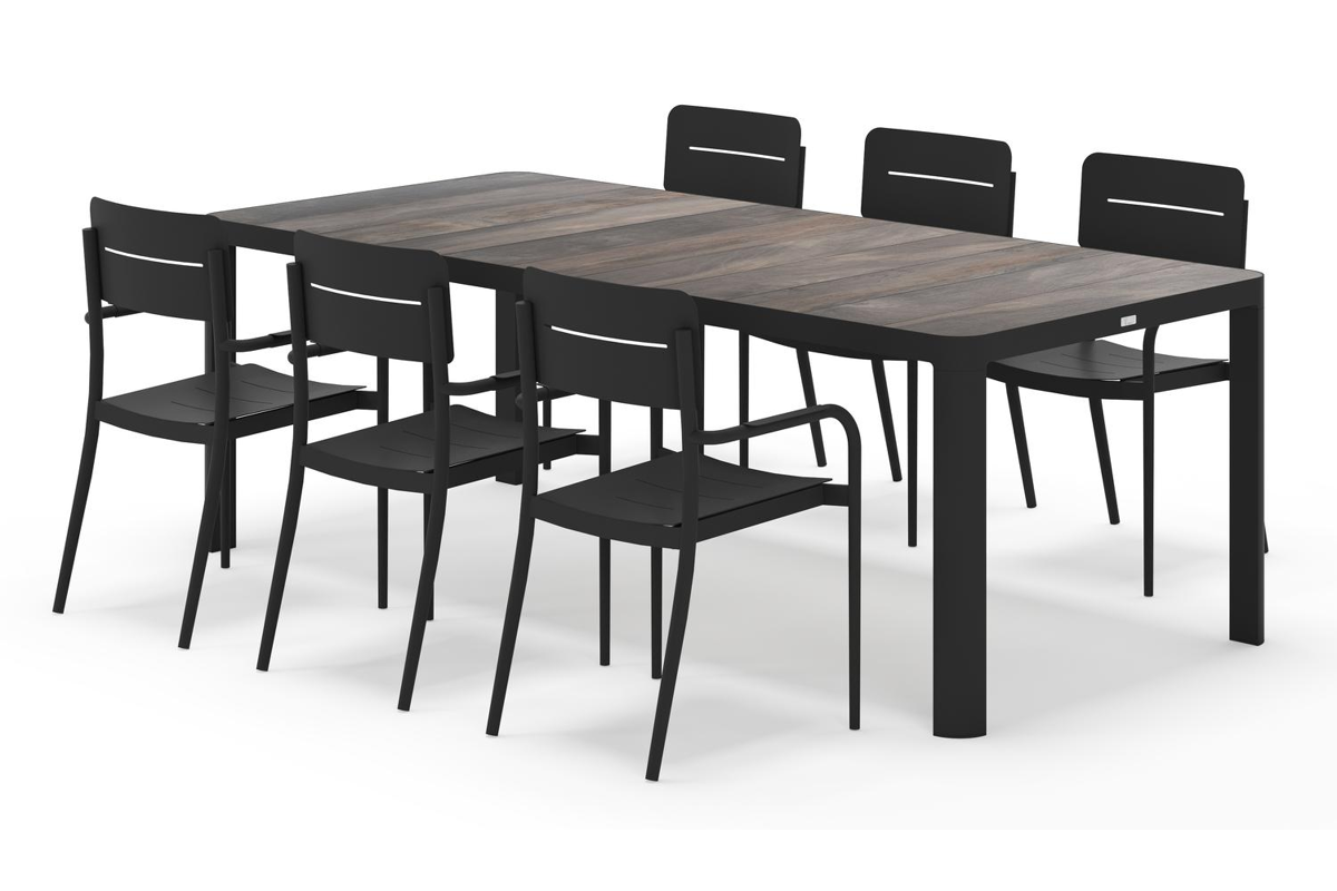 Ellara tuinset rechthoekig in zwart aluminium en keramische tegels grijs met 6 Salto tuinstoelen | Exterioo