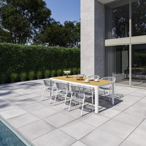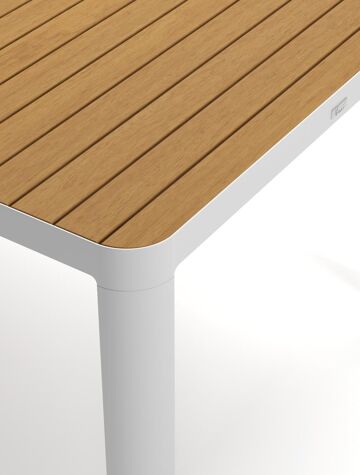 Het frame van de tafel is gemaakt uit roestvrij aluminium, een sterk, maar toch licht materiaal dat makkelijk verplaatsbaar is. Het oppervlak is glad afgewerkt waardoor het geen vuil aantrekt en onderhoudsvriendelijk is. De poedercoating zorgt voor de UV- en weerbestendigheid van je meubel.
