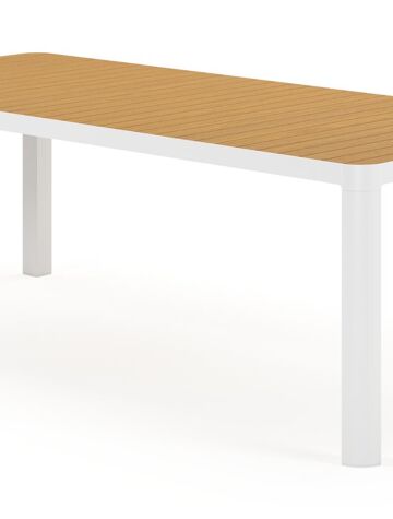 Een tafelblad uit polywood heeft de look van hout, maar is eigenlijk kunststof. Je geniet van de charmante uitstraling van hout, maar het barst of scheurt niet en behoudt jarenlang zijn unieke bruine houtlook. Opgelet: polywood is een synthetisch materiaal dat niet resistent is tegen hitte. Warmte - denk aan zonlicht dat door glazen schijnt - kan het materiaal beschadigen. Gebruik dus altijd een onderzetter of dienblad wanneer je glaswerk op je meubel plaatst.