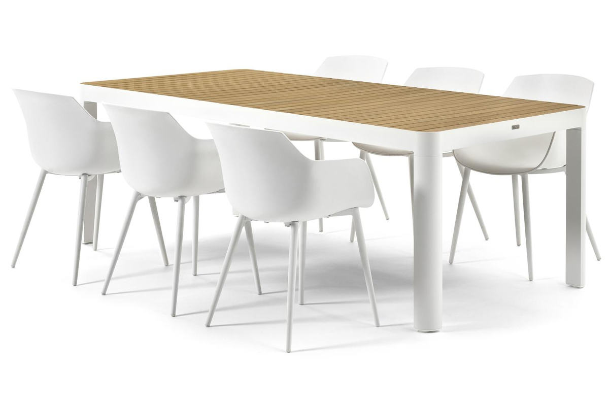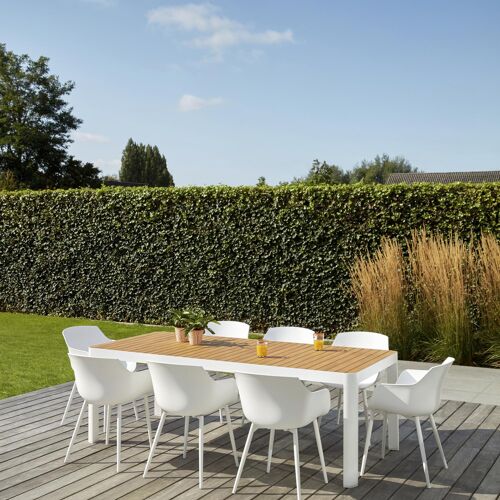 Ellara tuinset verzoent strakke en speelse lijnen. Het tafelblad heeft een rechthoekige vorm met afgeronde hoeken. Het tafelframe is fijn afgewerkt met ronde tafelpoten.