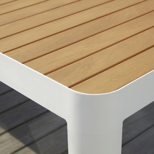 Het frame van de tafel is gemaakt uit roestvrij aluminium, een sterk, maar toch licht materiaal dat makkelijk verplaatsbaar is. Het oppervlak is glad afgewerkt waardoor het geen vuil aantrekt en onderhoudsvriendelijk is. De poedercoating zorgt voor de UV- en weerbestendigheid van je meubel.