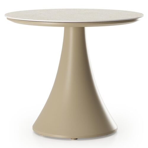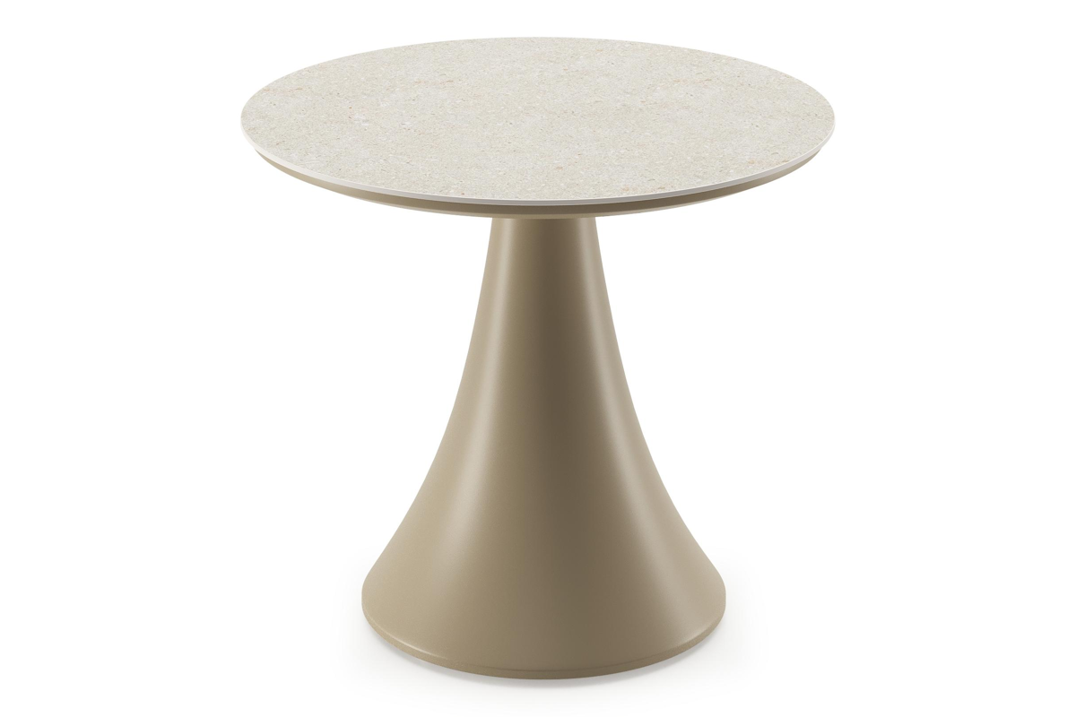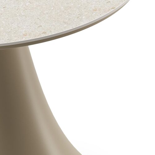 Fano low dining loungetafel rond in beige aluminium en volkeramiek Shilin - Dia. 65 x H 40 cm | Exterioo