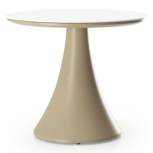Fano low dining loungetafel rond in beige aluminium en volkeramiek Arctic White - Dia. 65 x H 40 cm | Exterioo