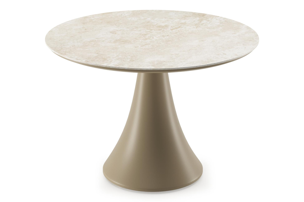 Fano low dining loungetafel rond in beige aluminium en volkeramiek Rapolano - Dia. 85 x H 55 cm | Exterioo