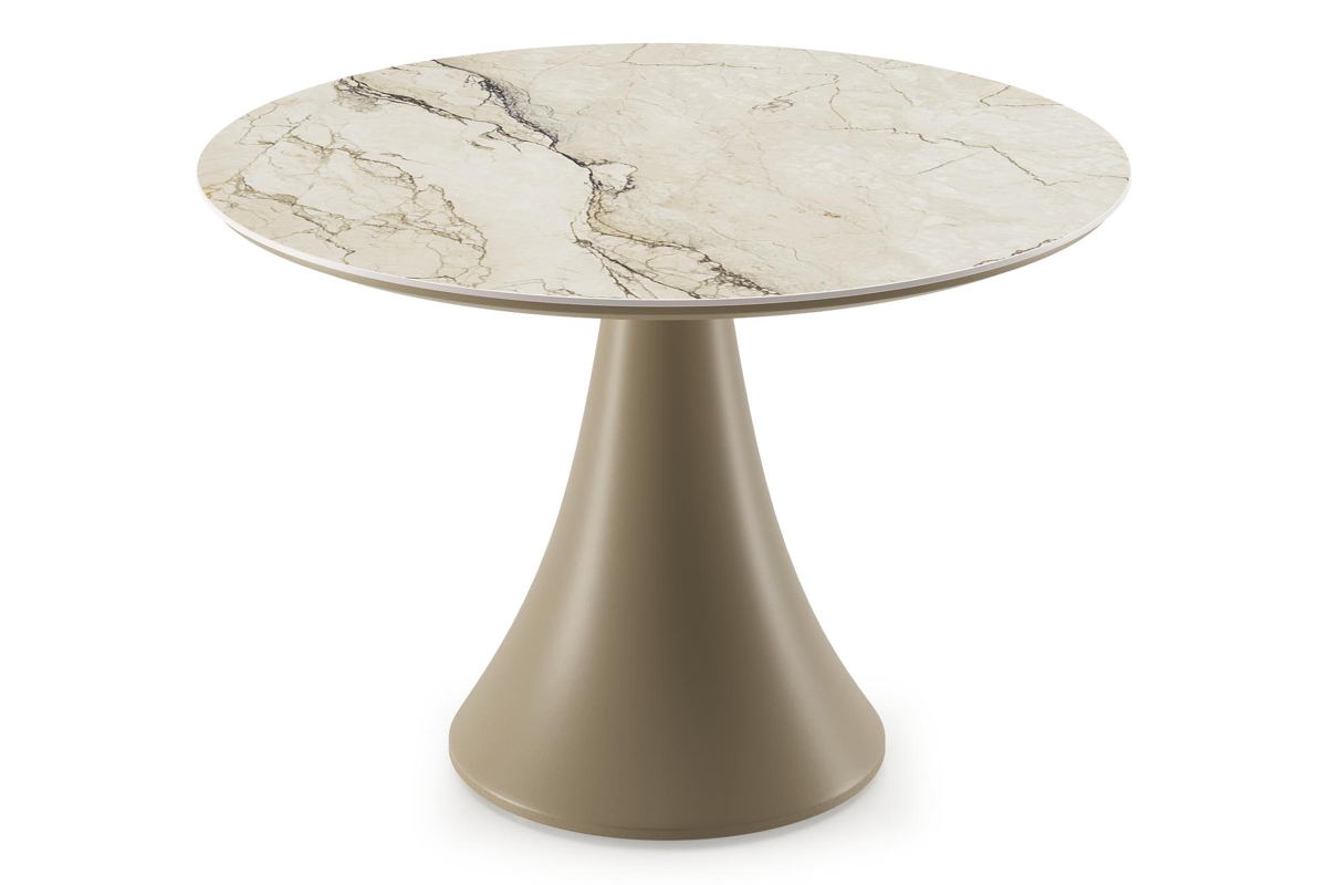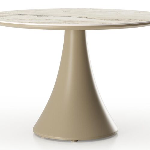 Fano low dining loungetafel rond in beige aluminium en volkeramiek Colorado Dunes - Dia. 85 x H 55 cm | Exterioo