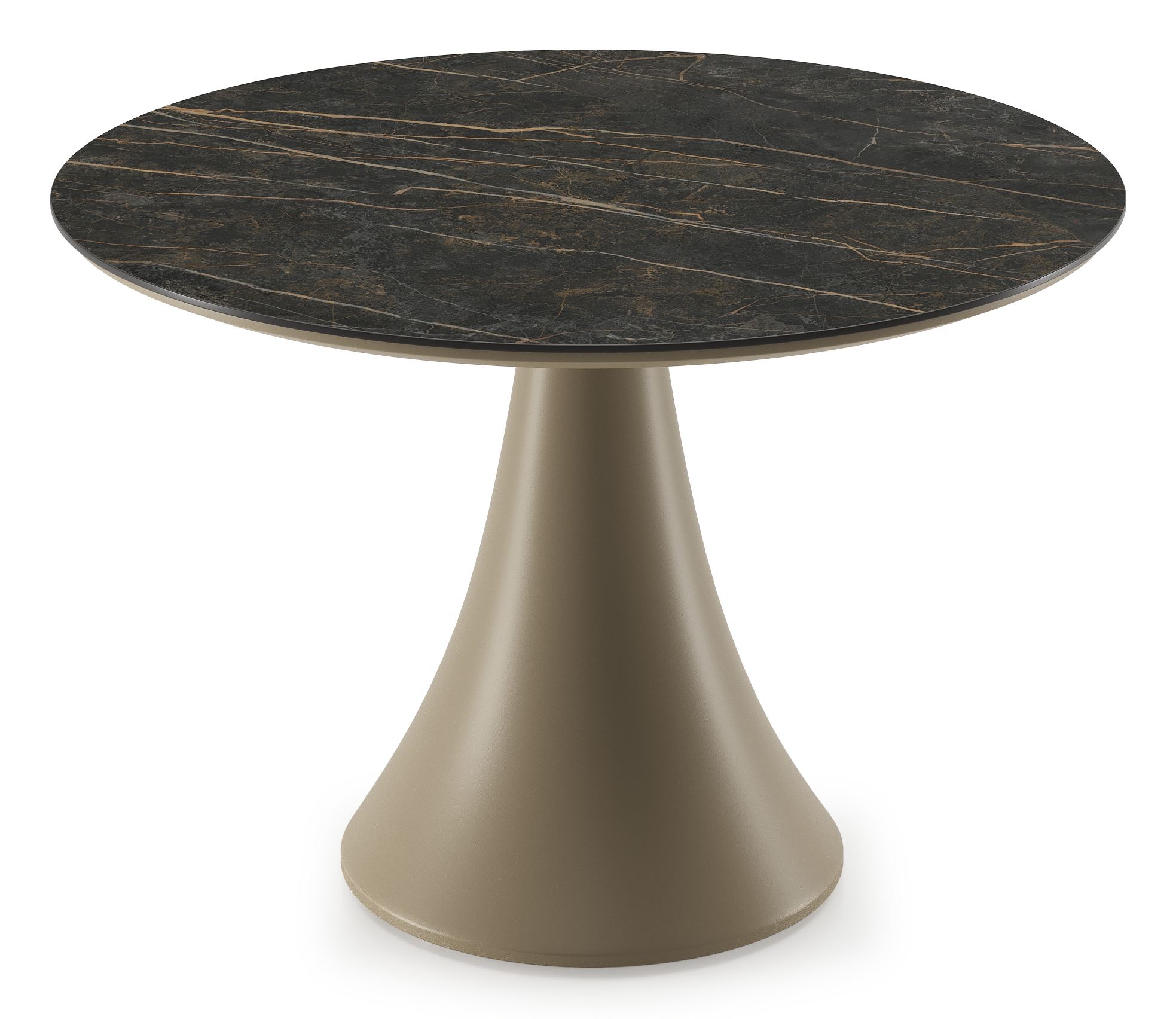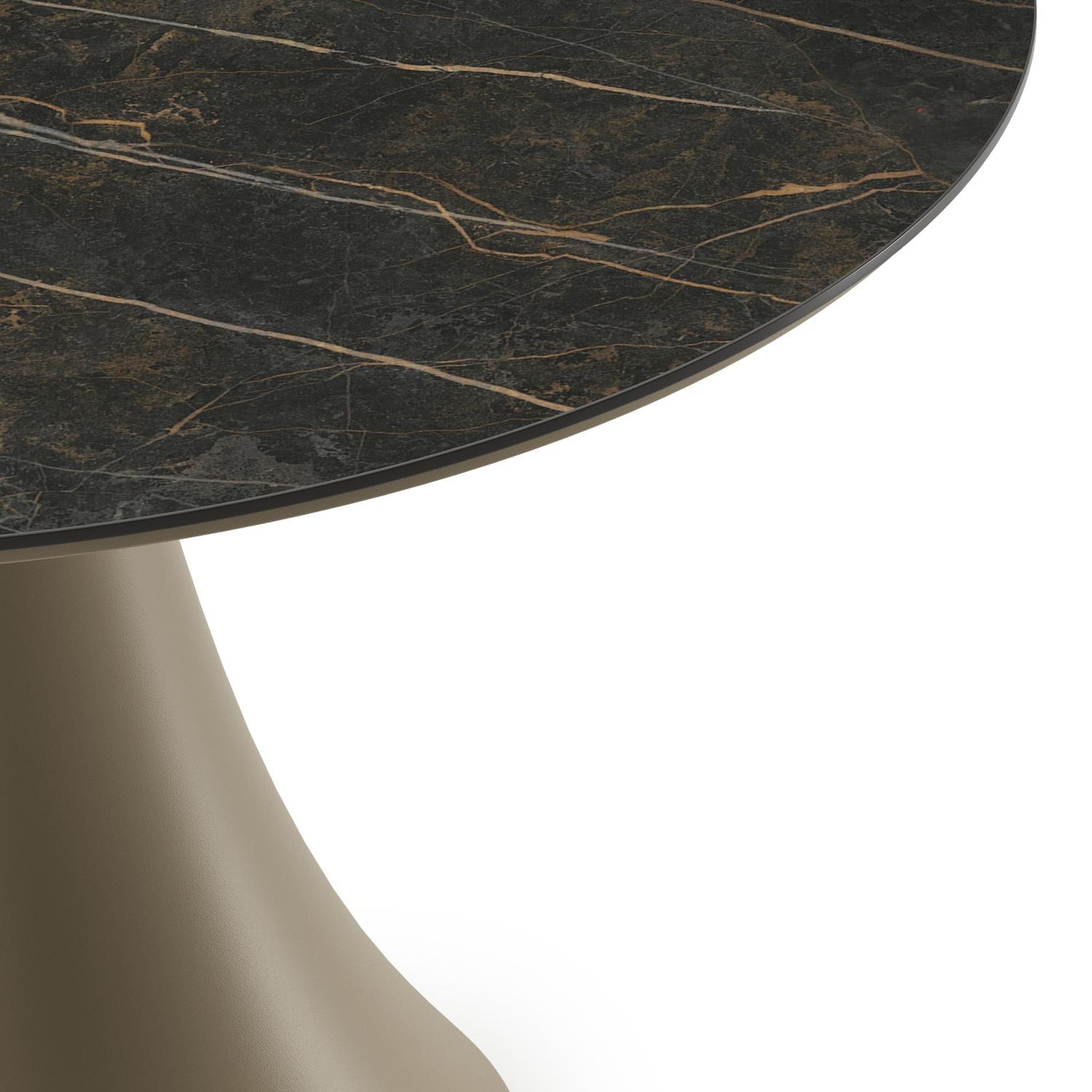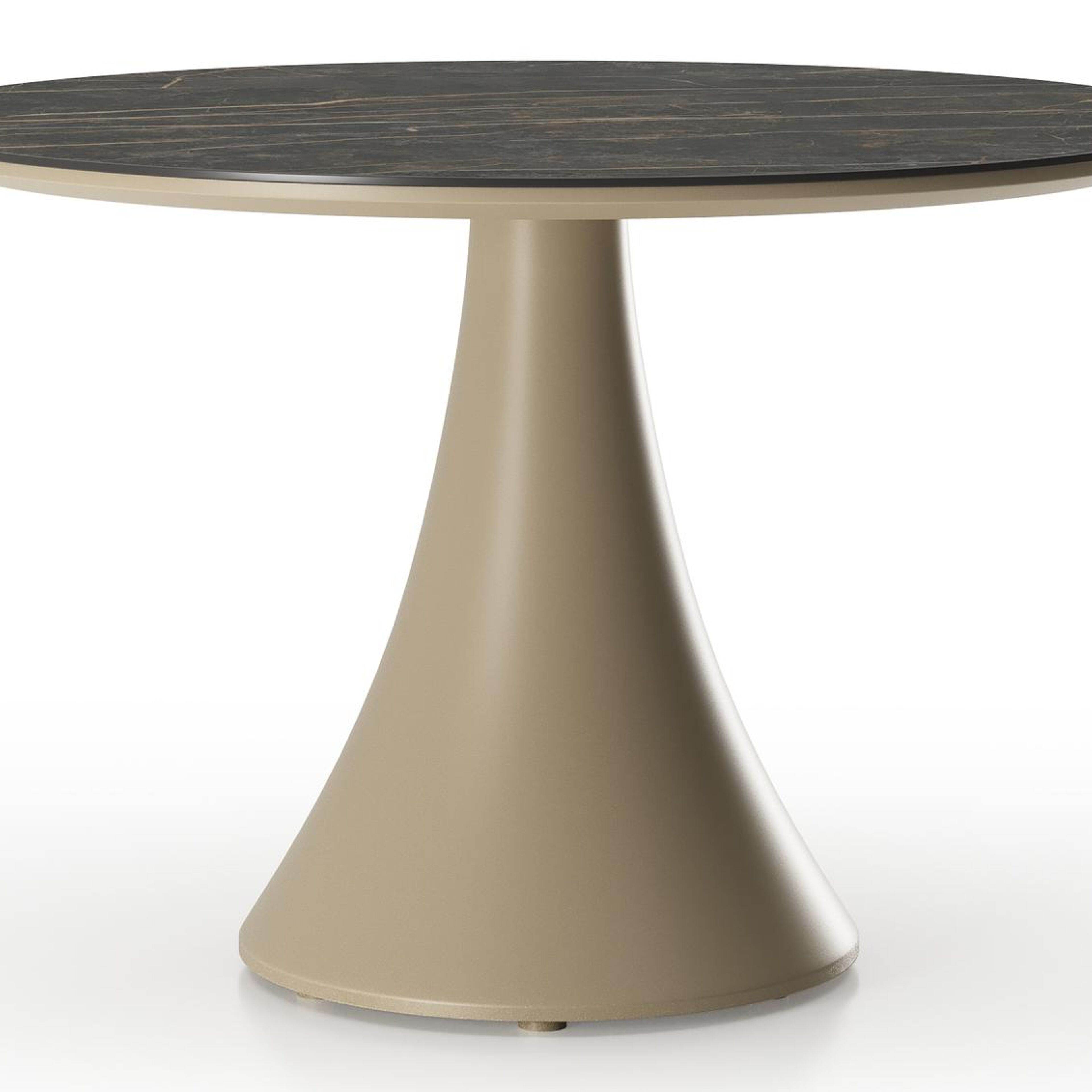 Fano low dining loungetafel rond in beige aluminium en volkeramiek Black Obsession - Dia. 85 x H 55 cm | Exterioo tuinmeubelen