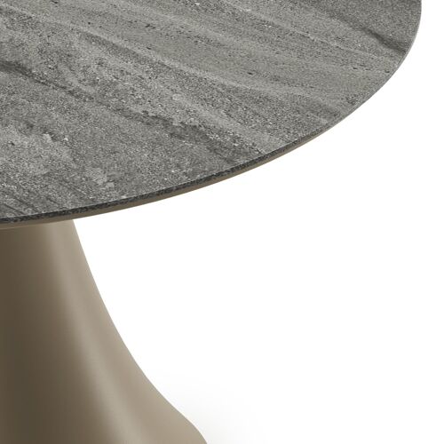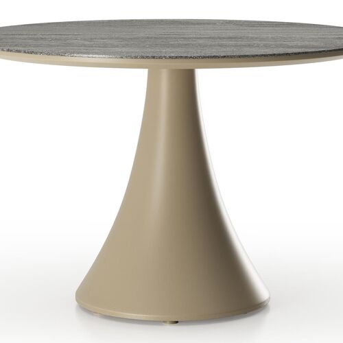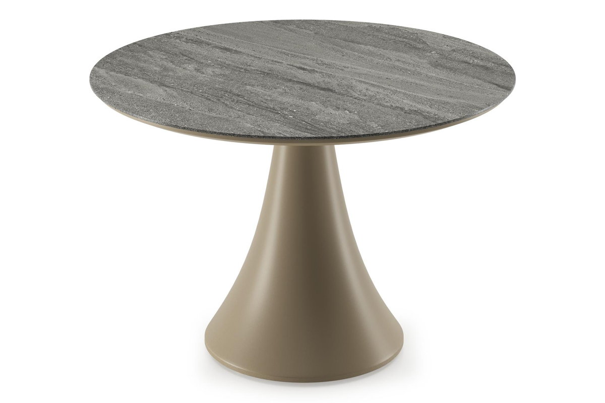 Fano low dining loungetafel rond in beige aluminium en volkeramiek Aspen Grey - Dia. 85 x H 55 cm | Exterioo