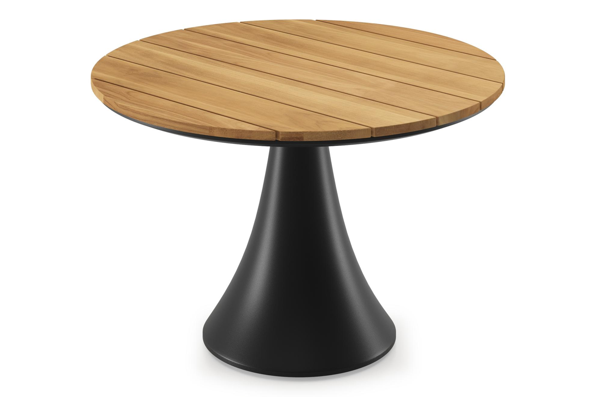 Fano low dining loungetafel in zwart aluminium en teak - Dia. 85 x H 55 cm | Exterioo