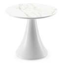 De Fano loungetafel onderscheidt zich door zijn trendy ronde tafel met de kenmerkende trompetpoot. Deze loungetafel is afgewerkt met een Calacatta tafelblad. Calacatta is een tafelblad met witte basis die afgewerkt is met grijze aders voor een karakteristieke marmerlook.