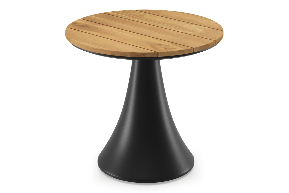 Fano low dining loungetafel in zwart aluminium en teak - Dia. 65 x H 55 cm | Exterioo
