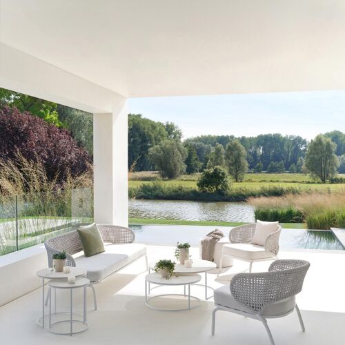 Fano loungetafels in wit aluminium en arctic white volkeramiek - Dia. 85/65 X H 35/30 cm | Exterioo