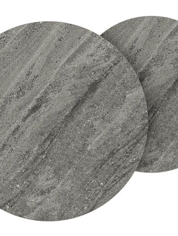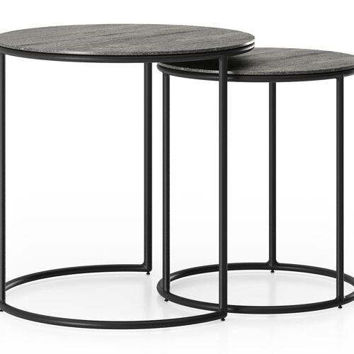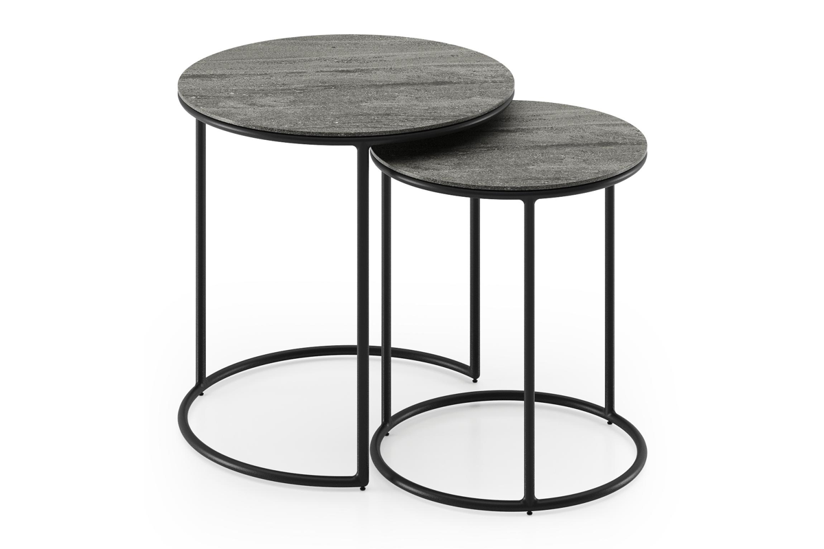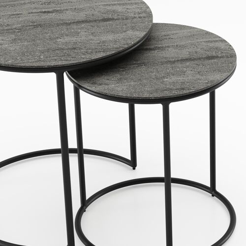 Set van 2 Fano loungetafels in zwart aluminium met volkeramiek Aspen Grey - tafel 1: dia 50 x H 50, tafel 2: dia 40 x H 45 cm | Exterioo